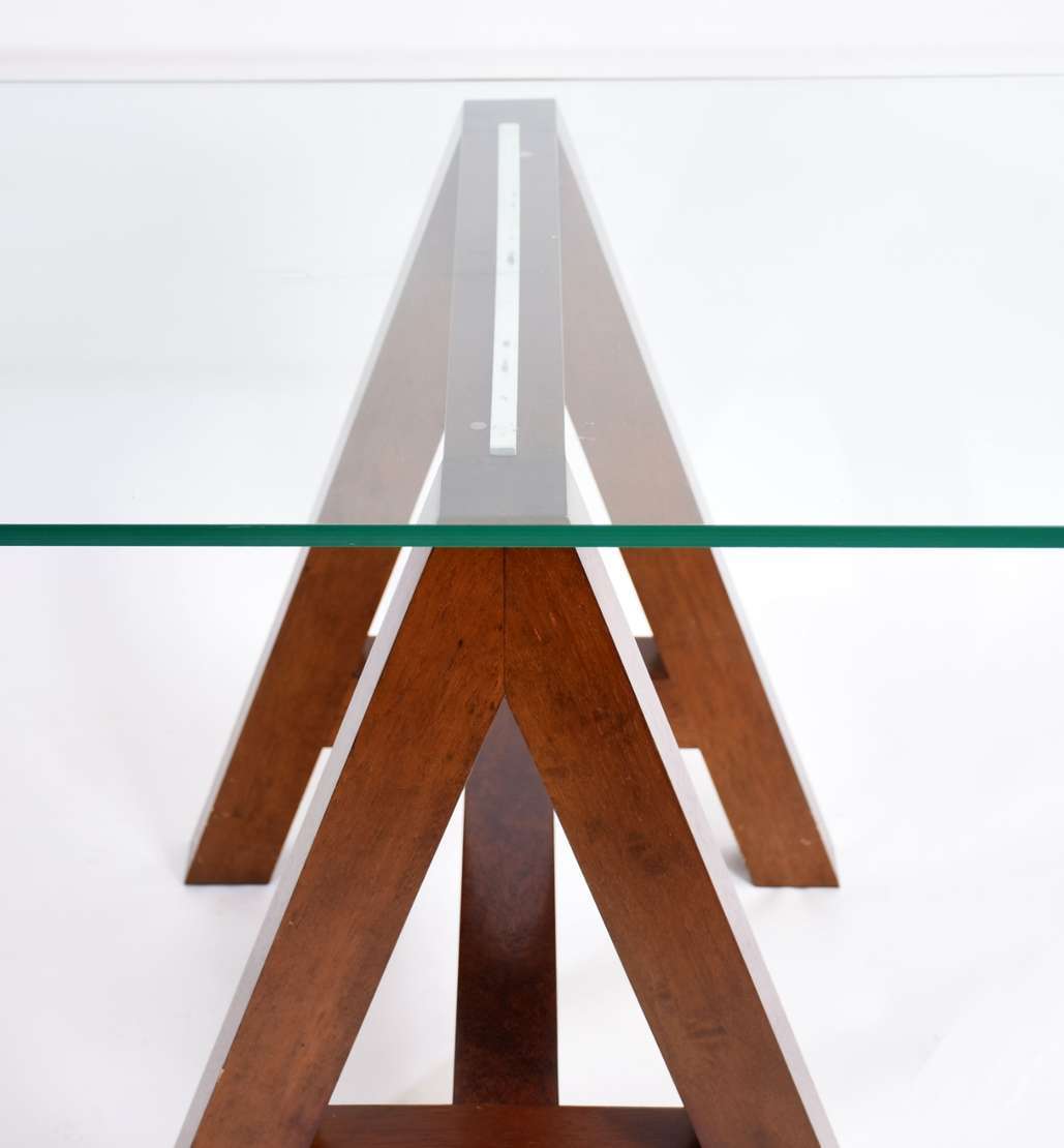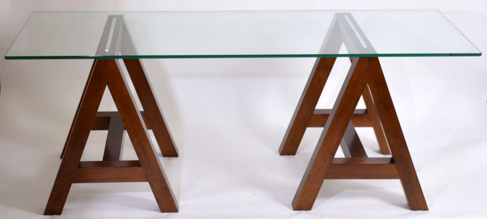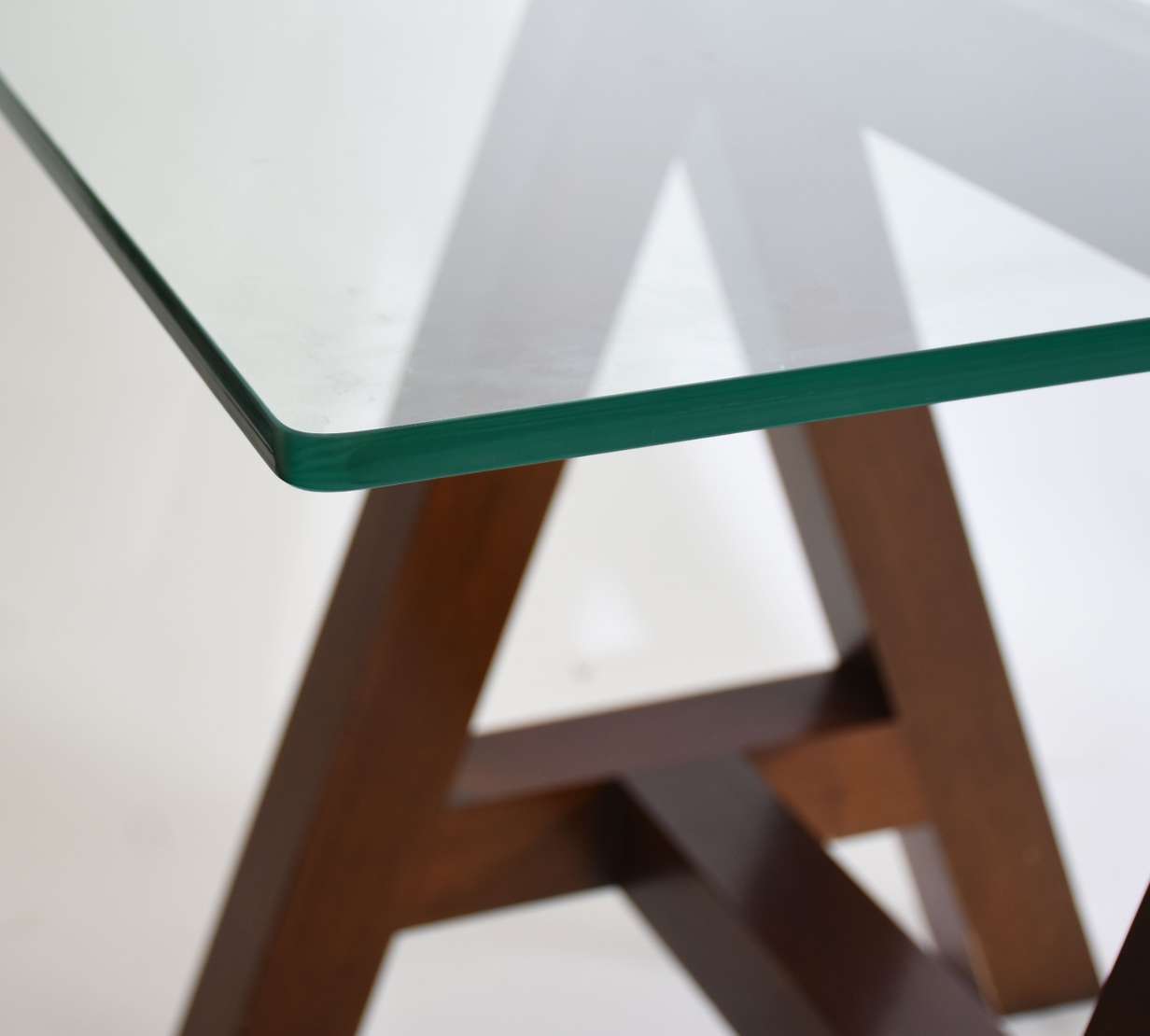 Mesa de centro "PIGMENTO" de madeira pintada, vidro, areia e pigmento (pintura com pequenos descascados nas laterais)...
