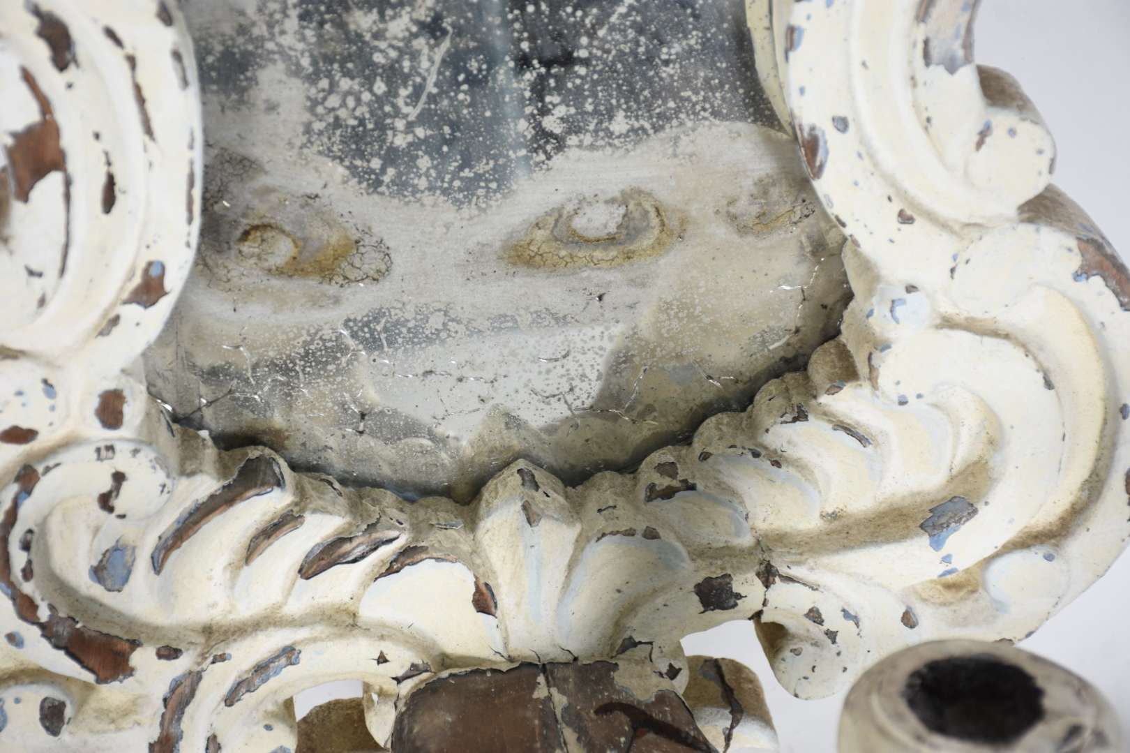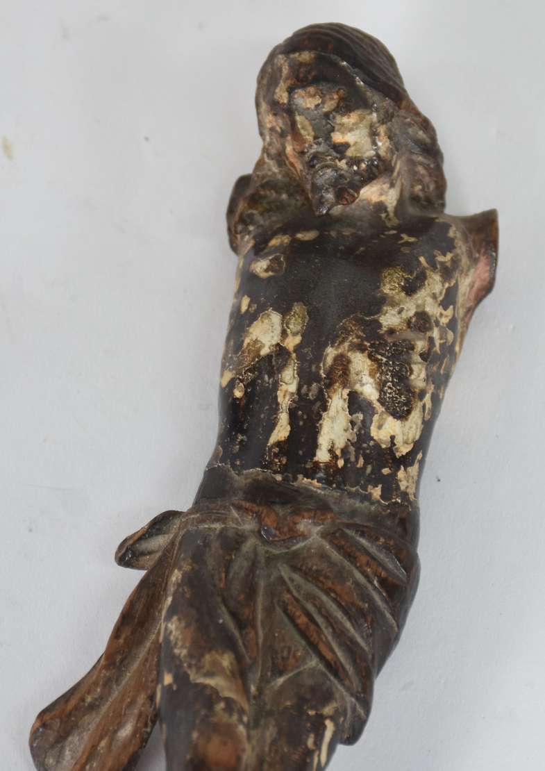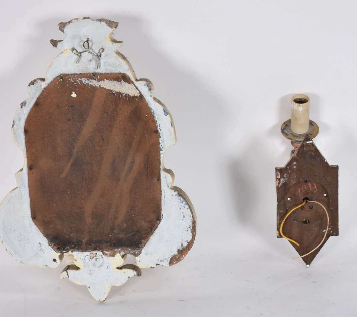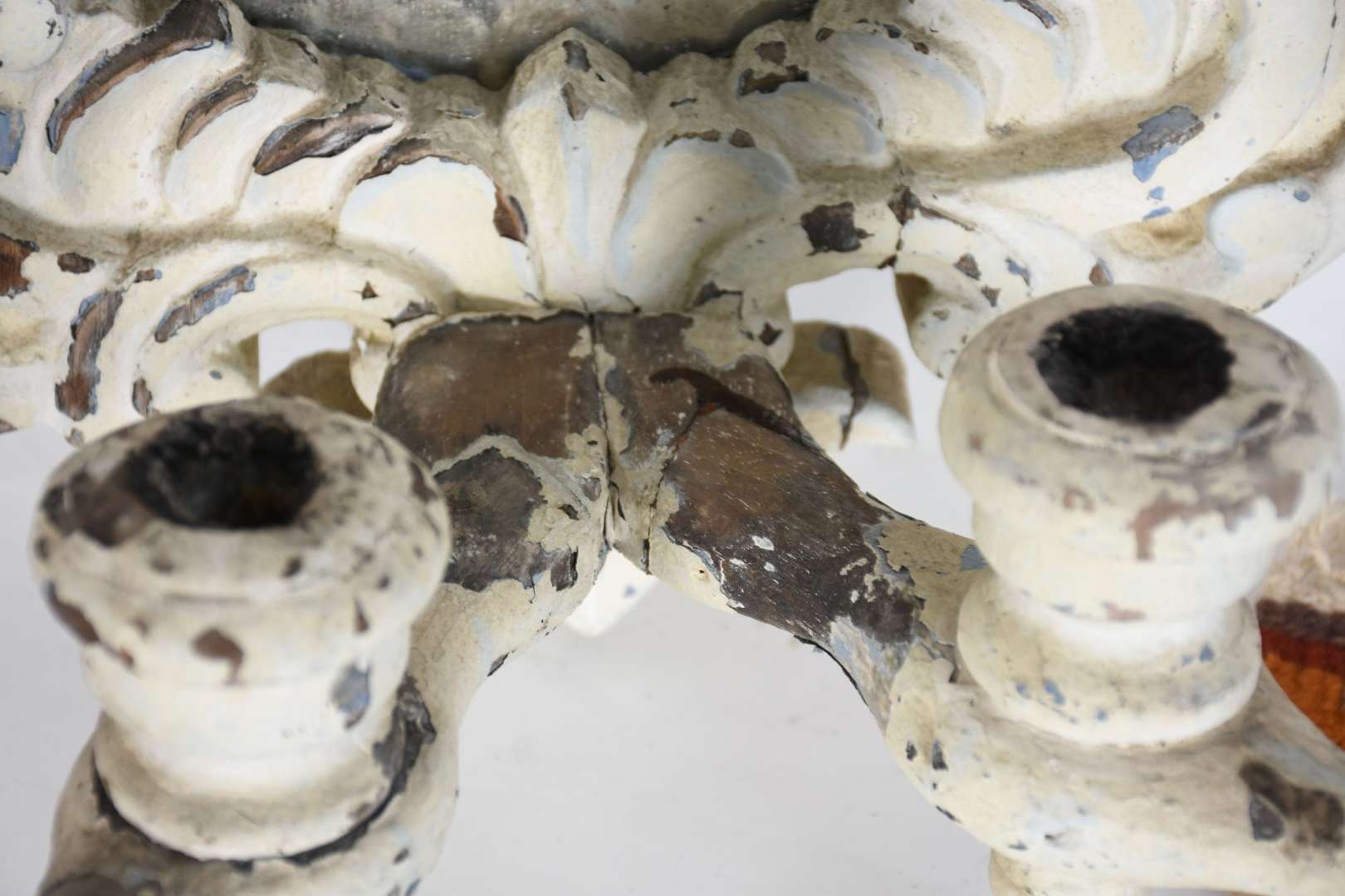Par de peanhas de madeira entalhada, resquícios dourados.