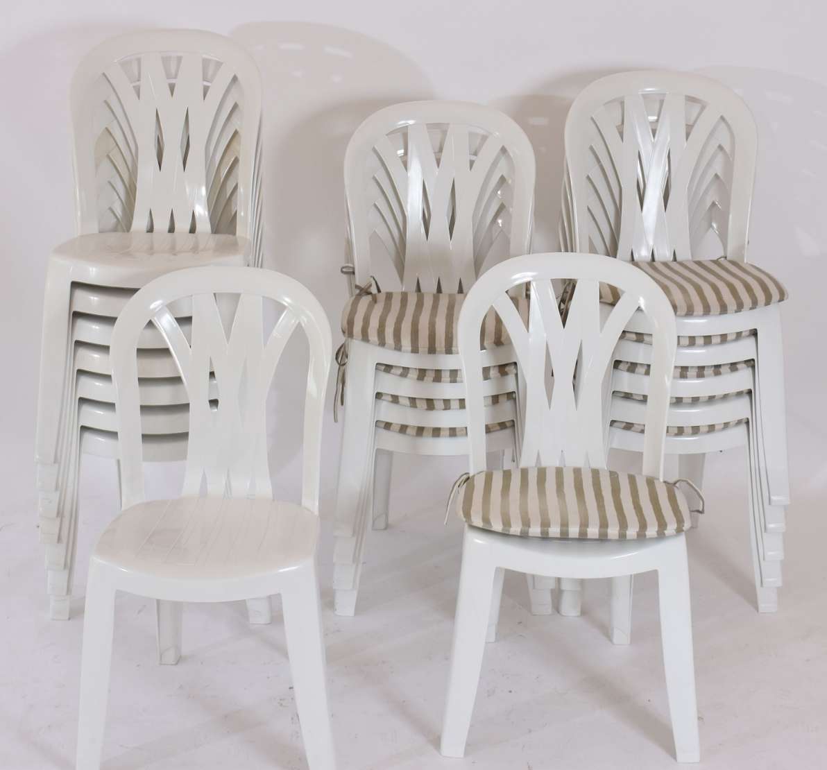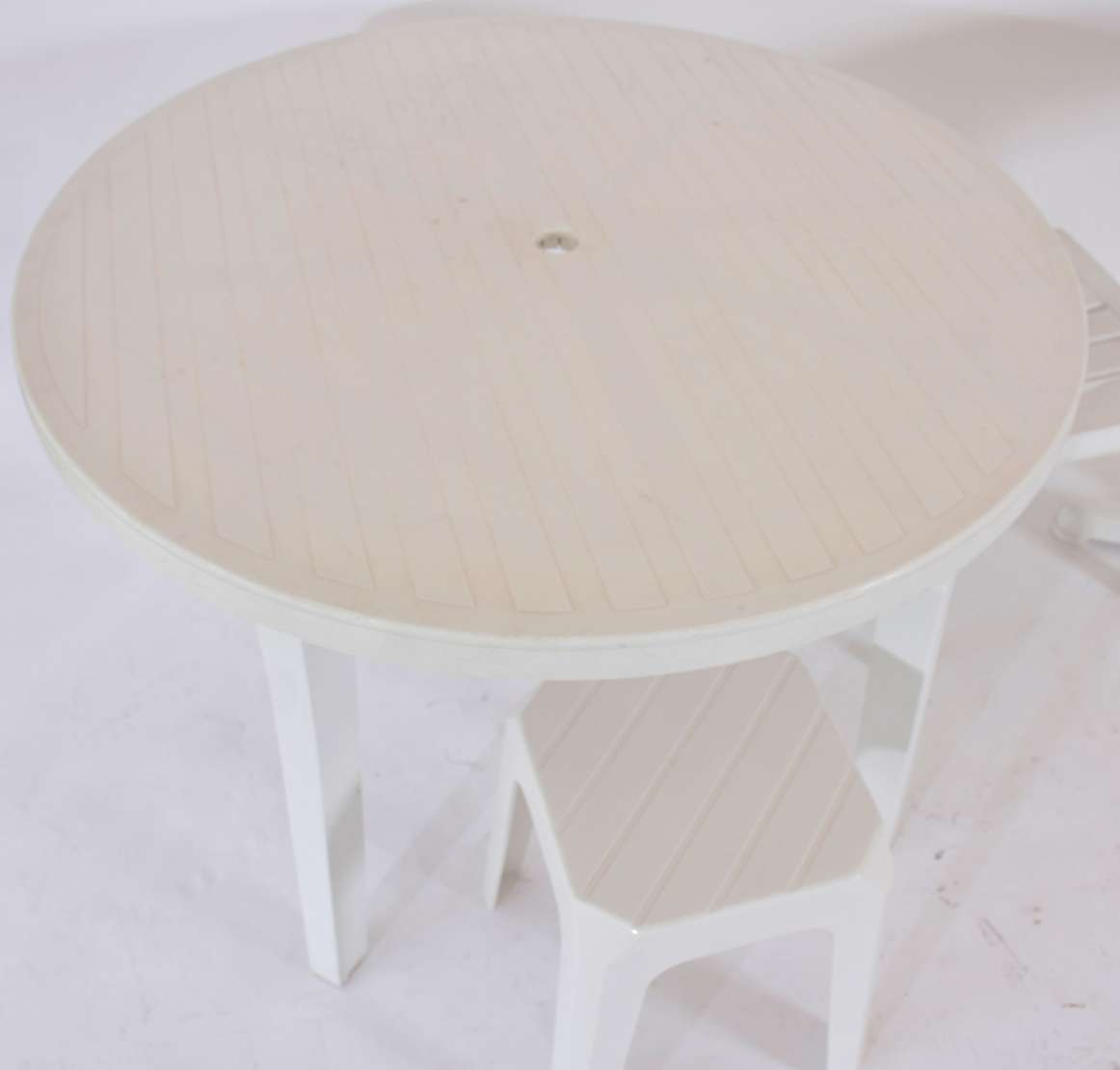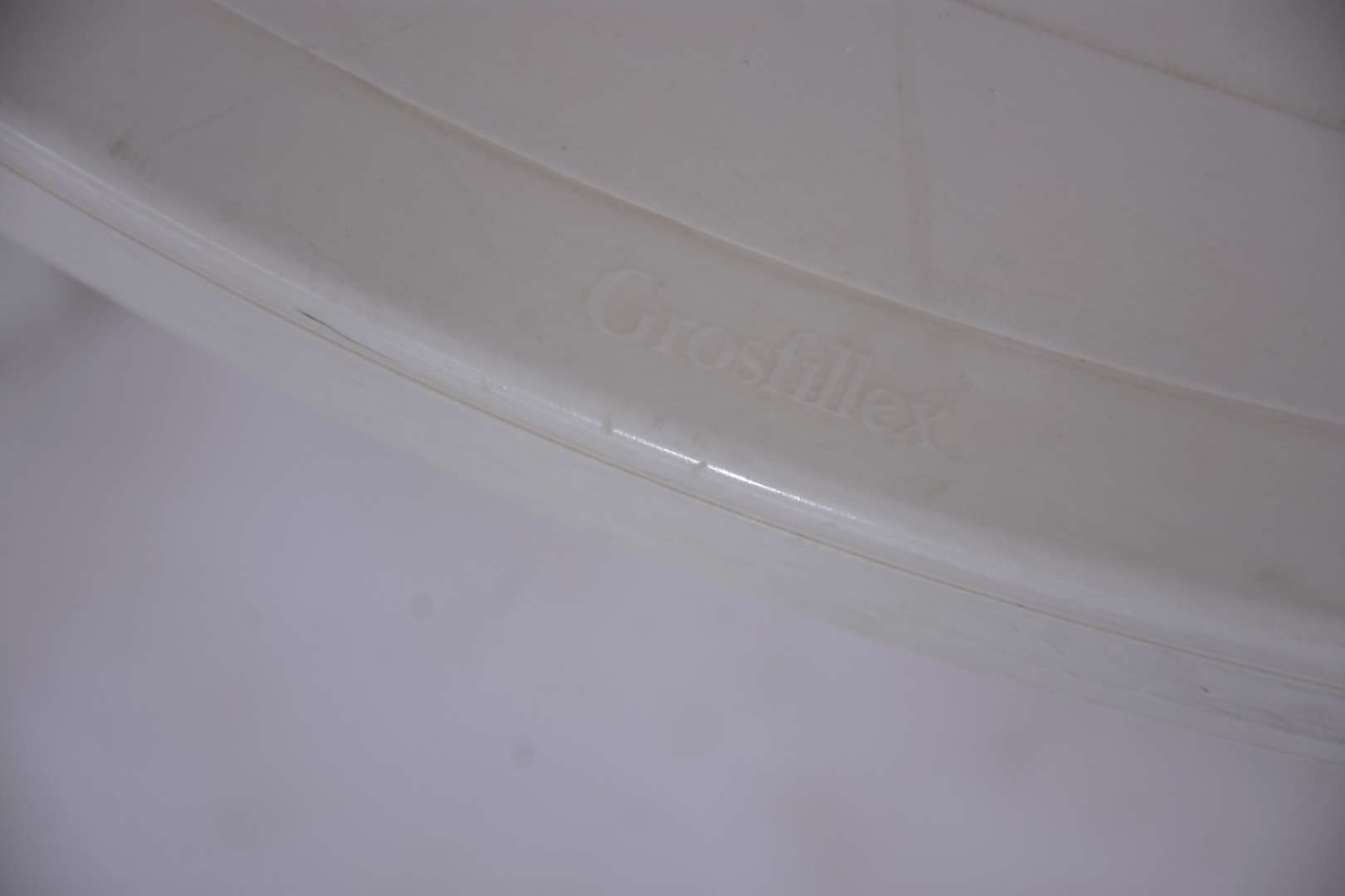 Conjunto com três peças floreiras de porcelana branca com frisos dourados.
