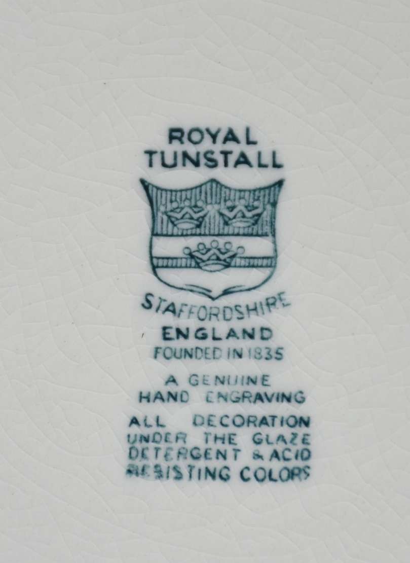 Aparelho de jantar, chá e café de faiança inglesa J & G MEAKIN. Westminster, na cor bege com frisos dourados e faixa ...