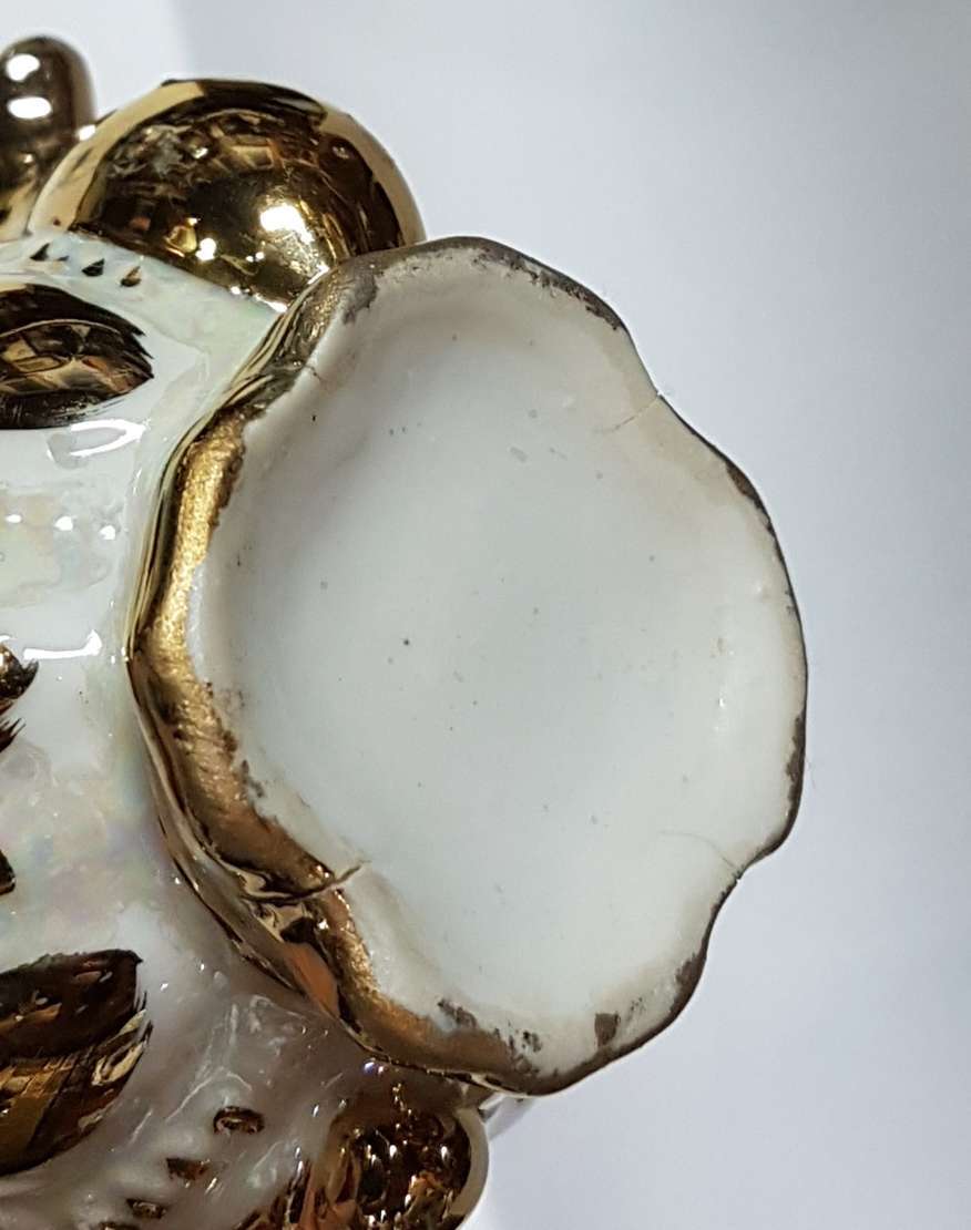 Conjunto de sobremesa de porcelana francesa "Madronet" na cor branca com frisos dourados, composto de um prato grande...