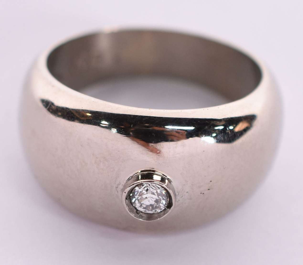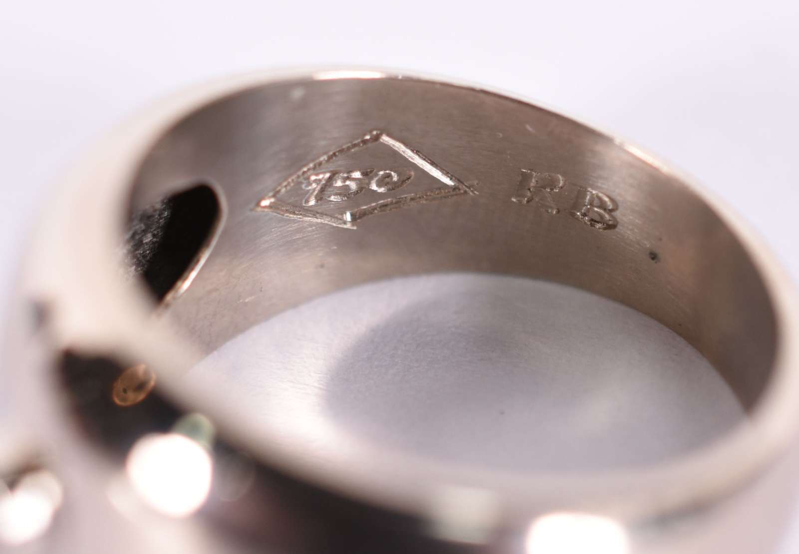 Anel de ouro branco 750 com brilhantes, aro 20 (Por motivos de seguranças as peças não encontram-se na loja).