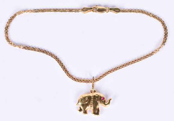Pulseira de ouro amarelo 18 k com pingente de elefante (Por motivo de segurança a peça não se encontra na loja).