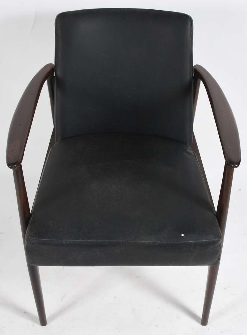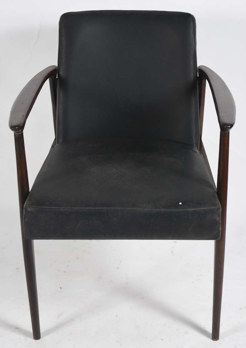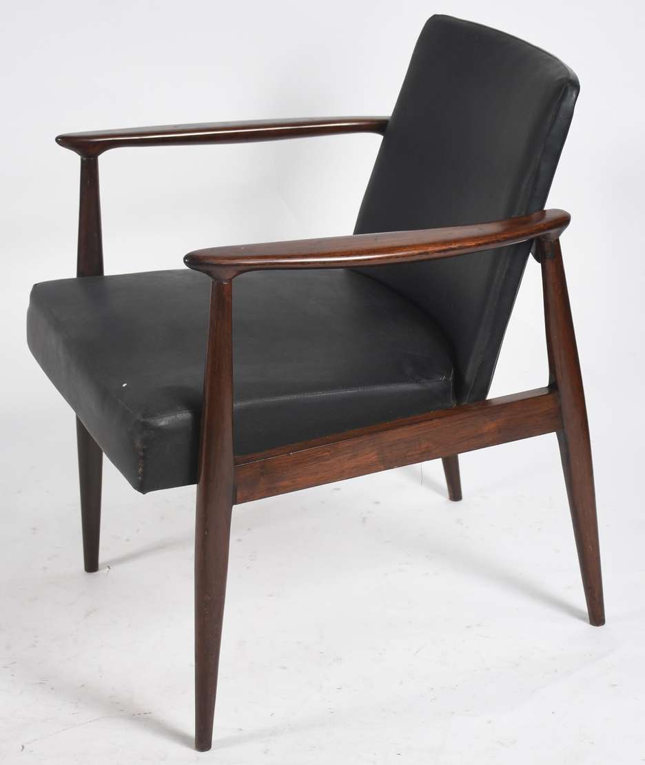 Poltrona Parati com base de madeira nobre, estofamento forrado de tecido bege (com desgastes). Anos 60.