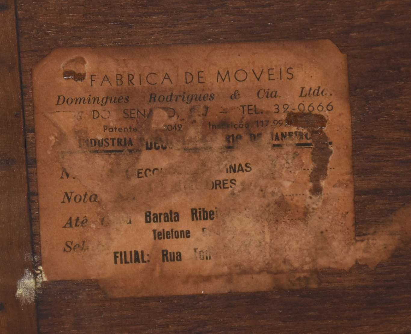 Aparador de madeira nobre, saia recortada, quatro pernas altas ligeiramente recurvas.
