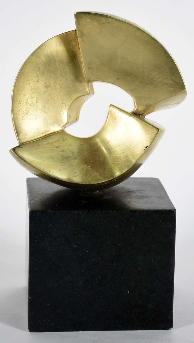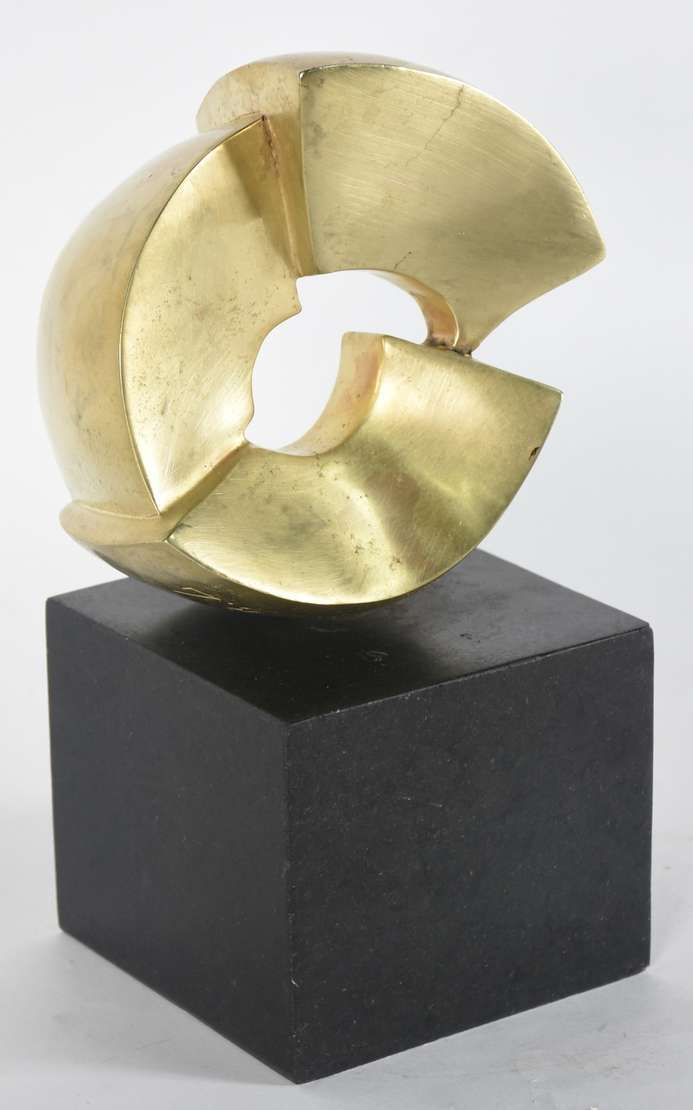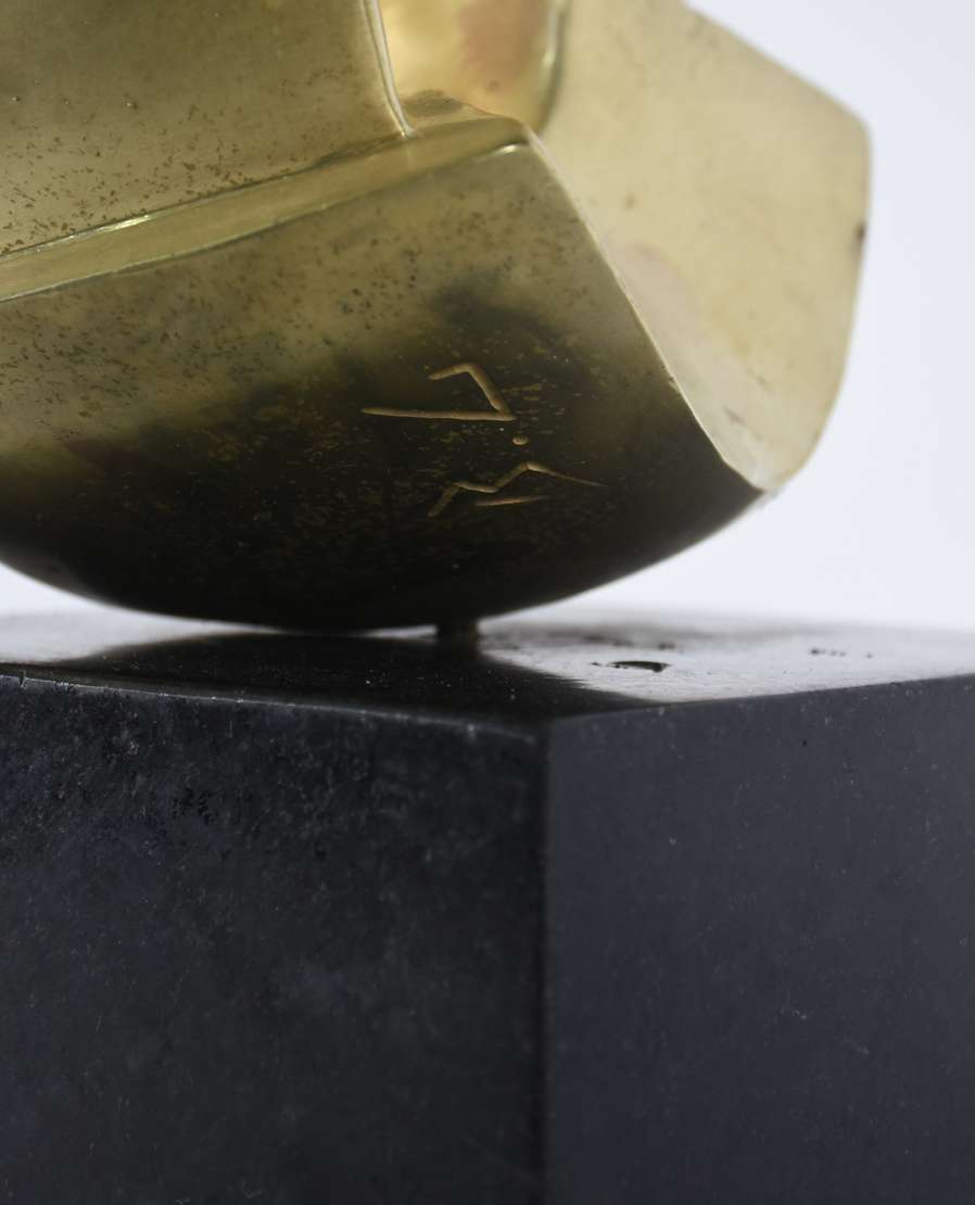 Grande escultura de bronze oriental representando "Samurai sustentando bowl" (acompanha peça de madeira com a qual se...