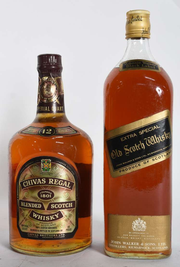 Quatro garrafas de Whisky sendo 1 Black Label, 1 Chivas Regal e 2 Buchanan's.