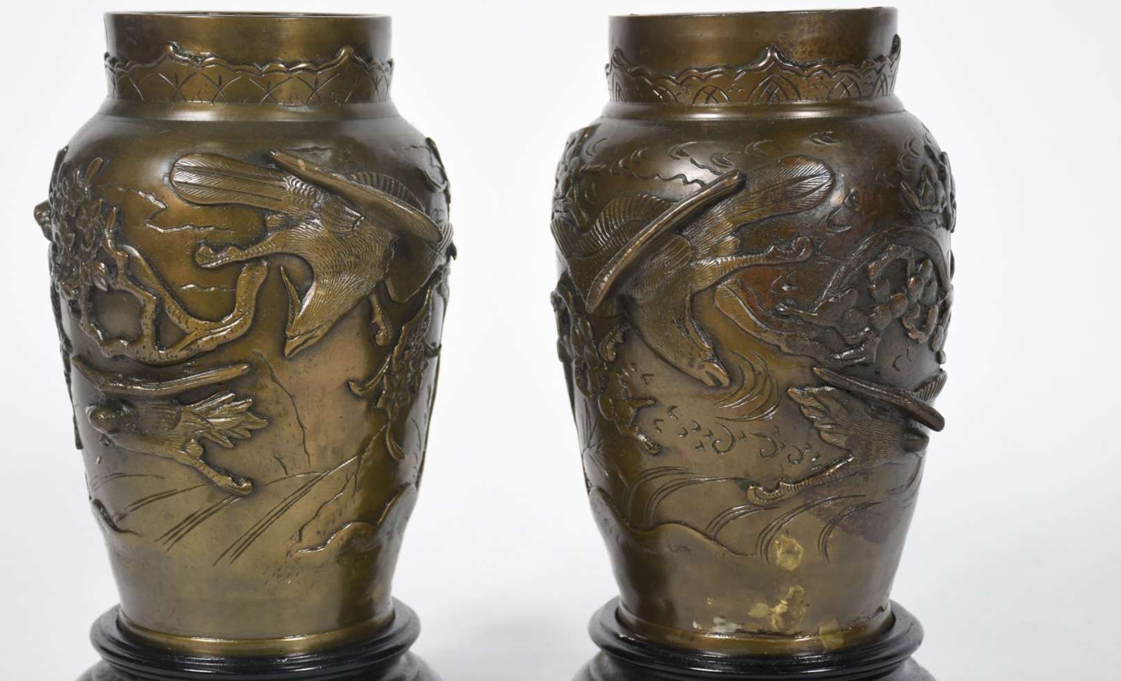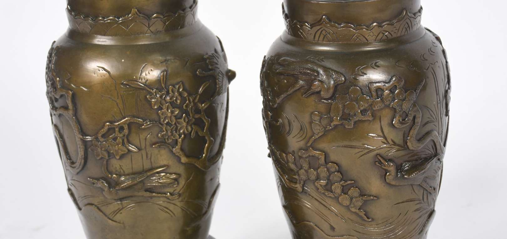 Vaso de bronze com figuras sacras em relevo.