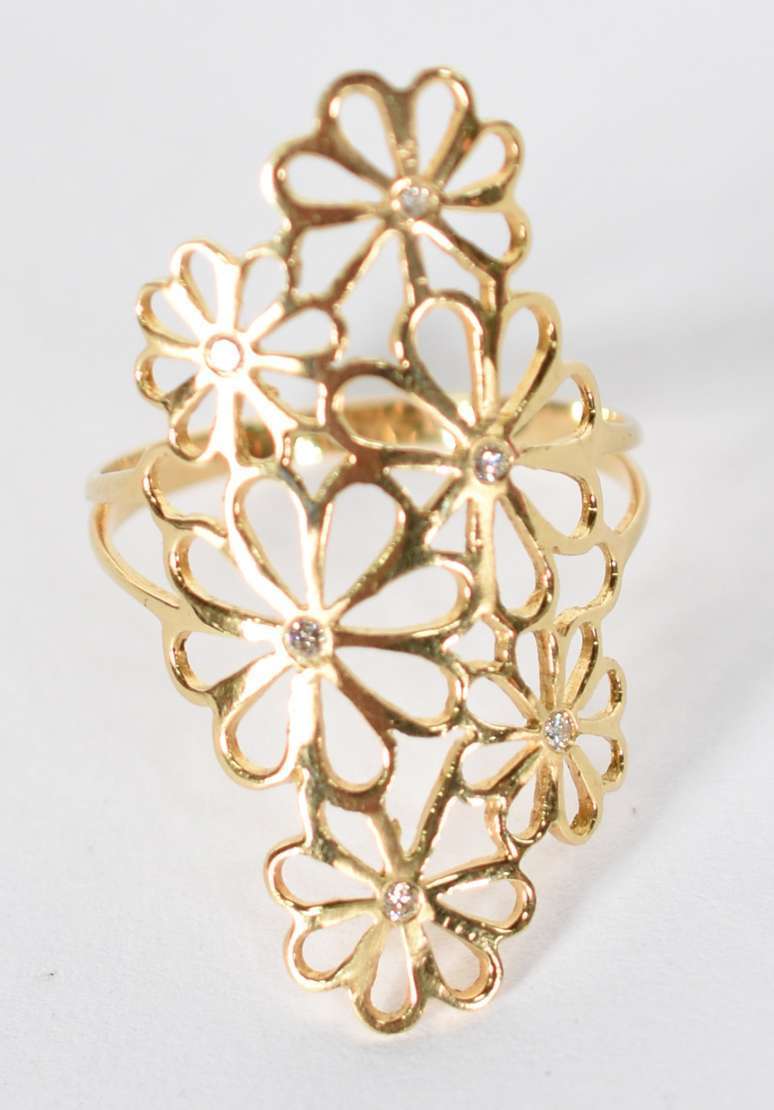 Anel de ouro amarelo 18 k com 14 brilhantes (Por motivos de segurança a peça não se encontra na loja).