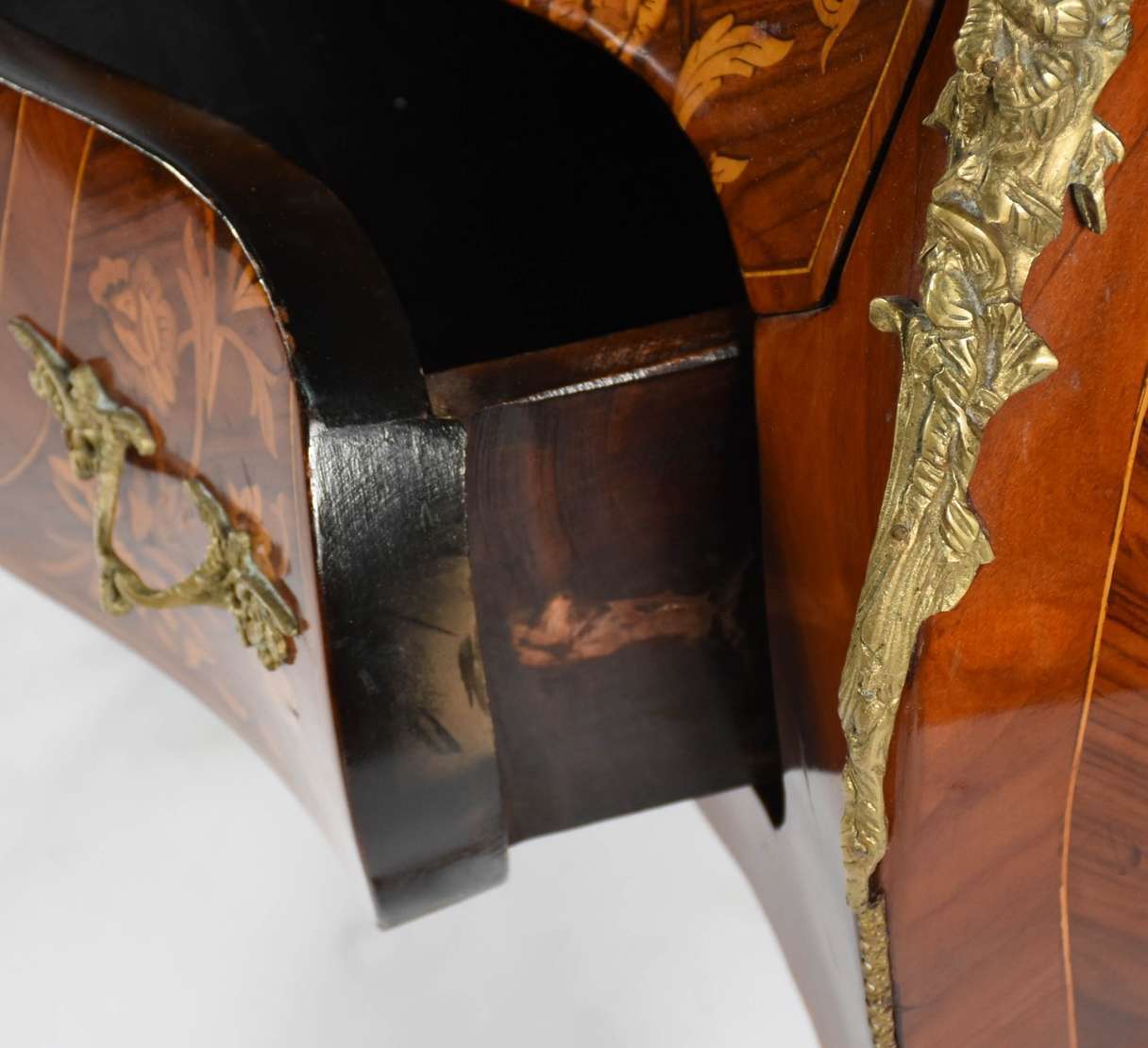Mesa de centro de madeira nobre com guirlandas vazadas na base.