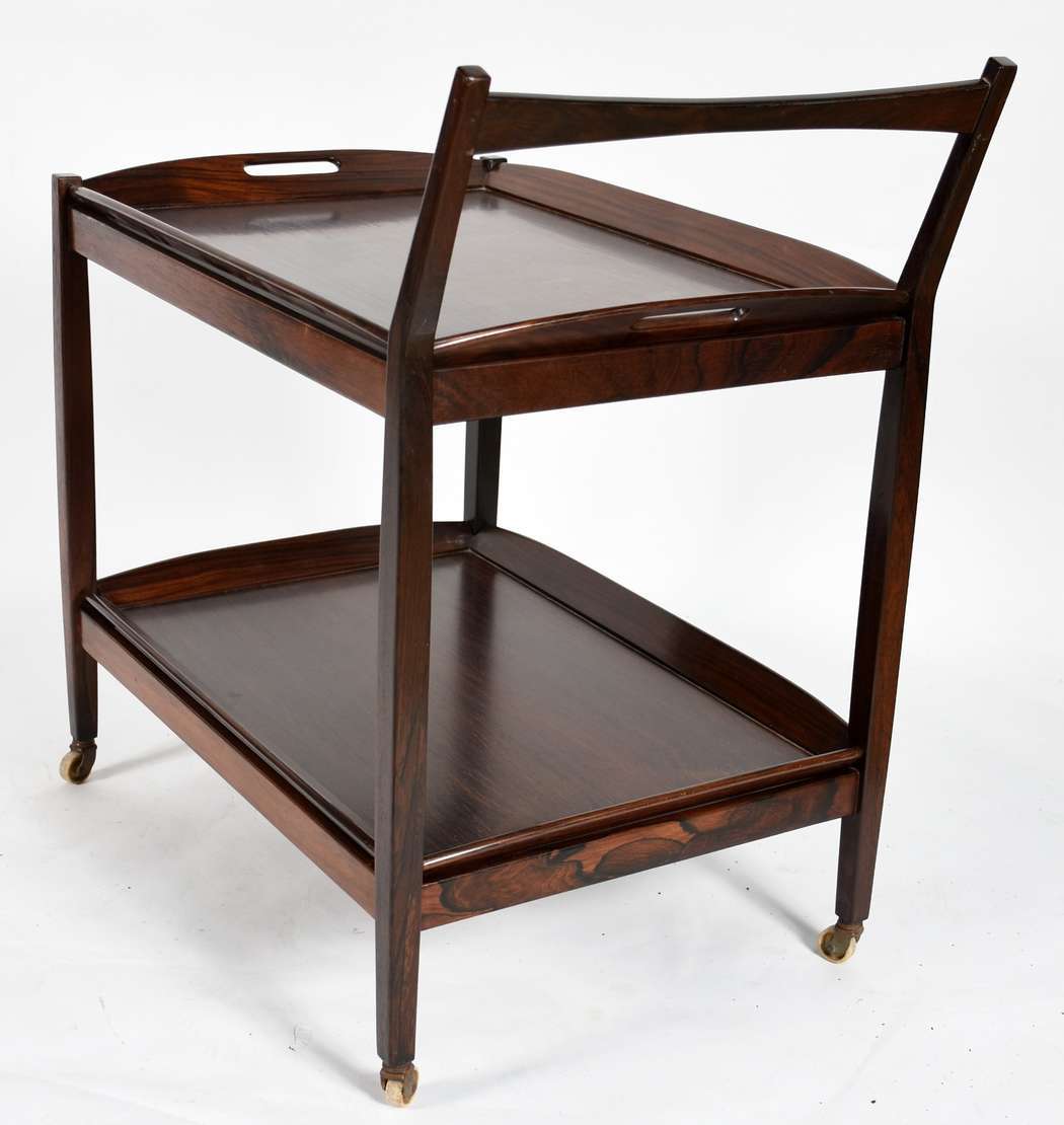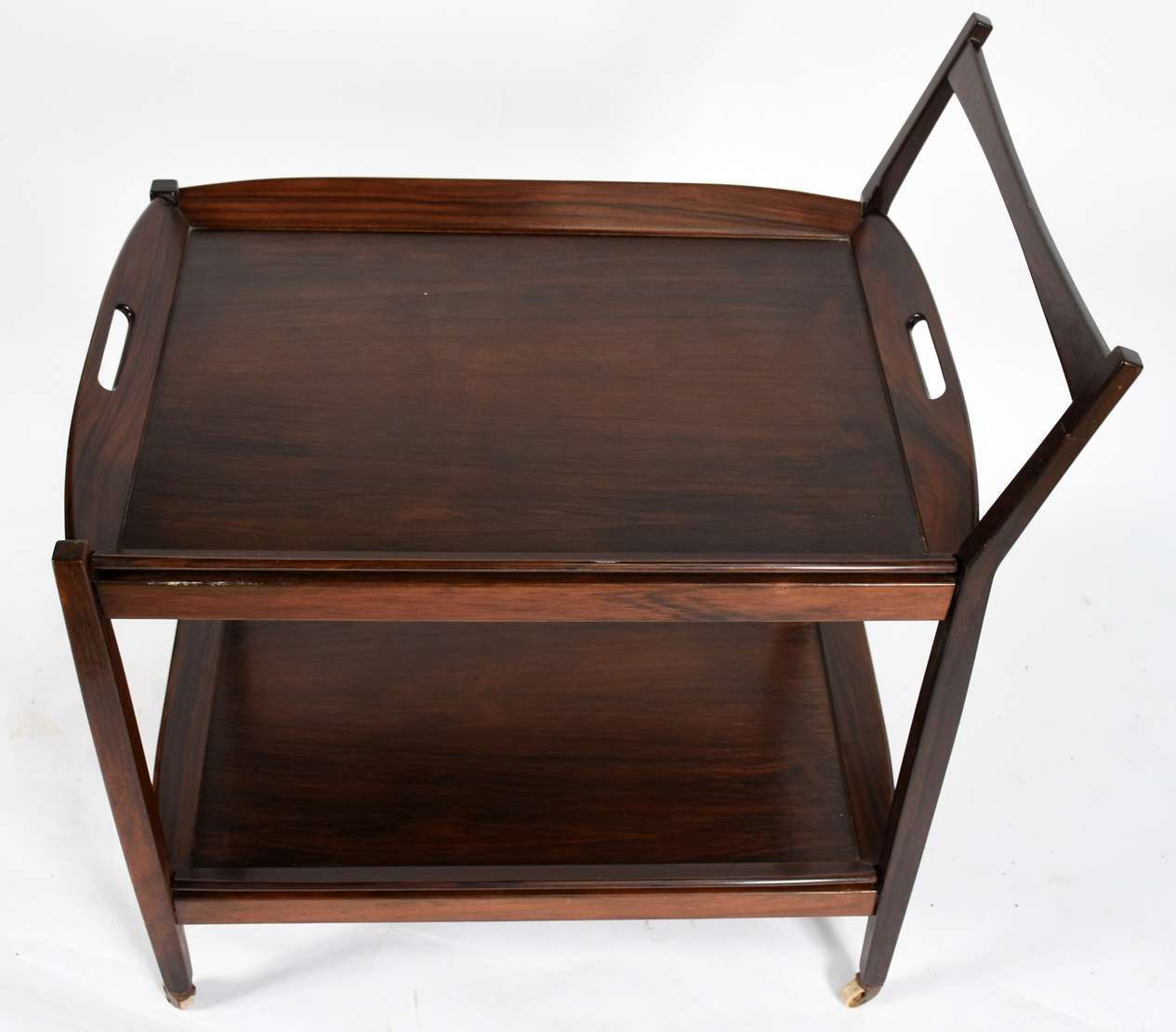 Aparador de madeira nobre, saia recortada, quatro pernas altas ligeiramente recurvas.
