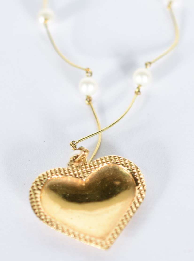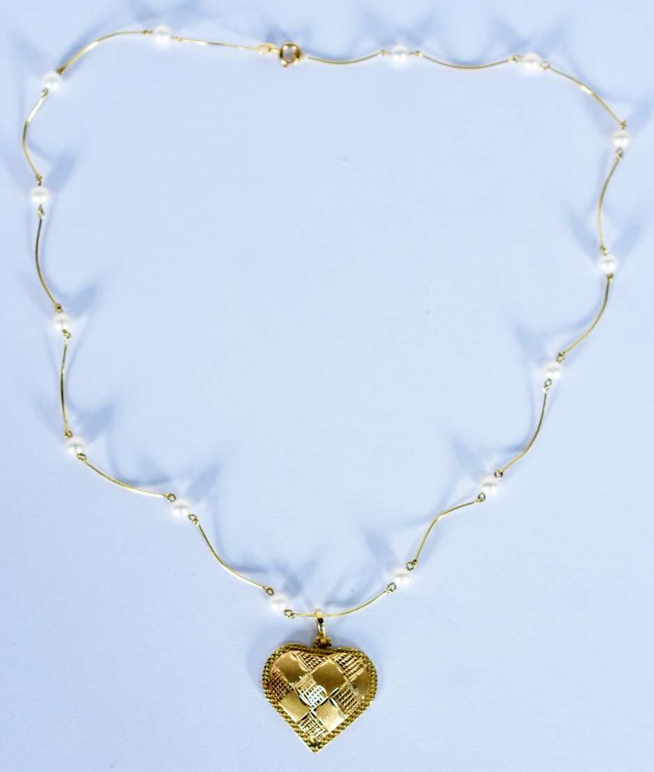Pulseira de ouro amarelo 18 k no feitio de elos com 3 pingentes na forma de coração em ouro branco, rose e ouro amare...