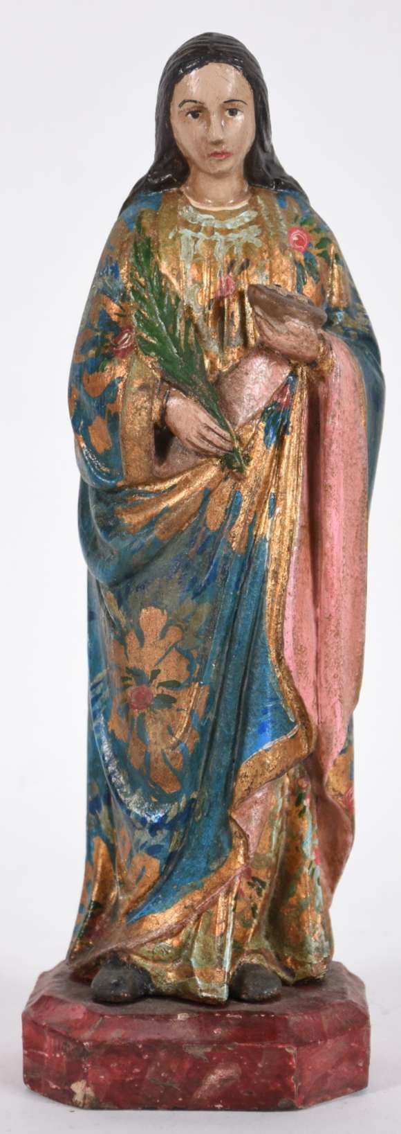 Cinco peças de ARTE POPULAR de barro cozido policromado (uma com lascado, cangaceiro com arma colada).