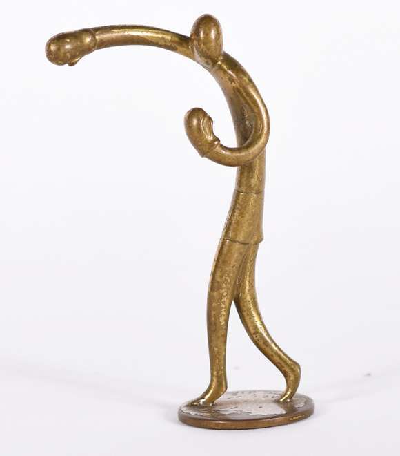 Escultura de bronze com base de mármore, representando menino. Assinado.