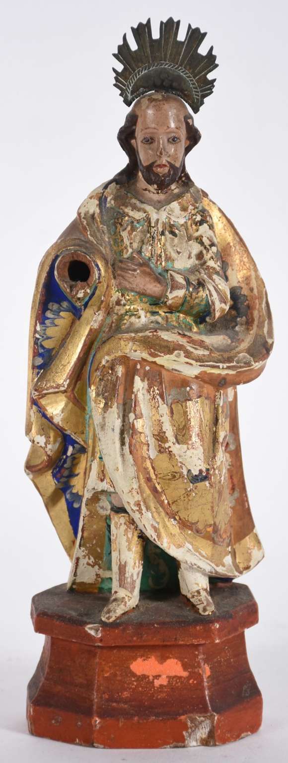 Antiga imagem de madeira policromada representando Santo com resplendor (desgastes).