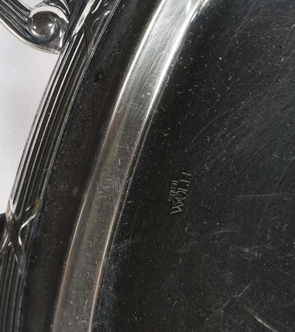 Bandeja com alças de metal espessuradp a prata Christofle, monograma central.