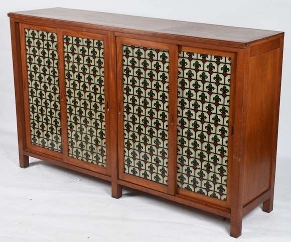 Móvel de madeira nobre com 4 portas de correr, prateleiras internas.