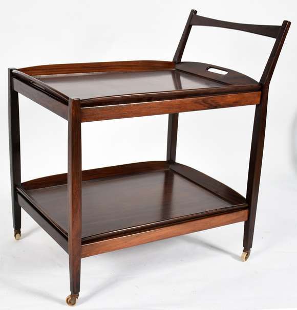 Aparador de madeira nobre, saia recortada, quatro pernas altas ligeiramente recurvas.