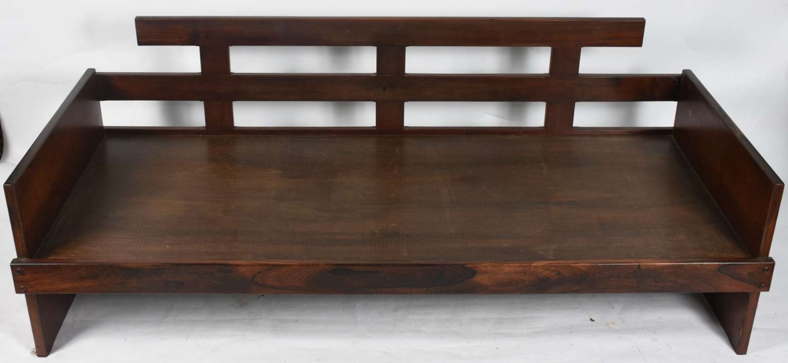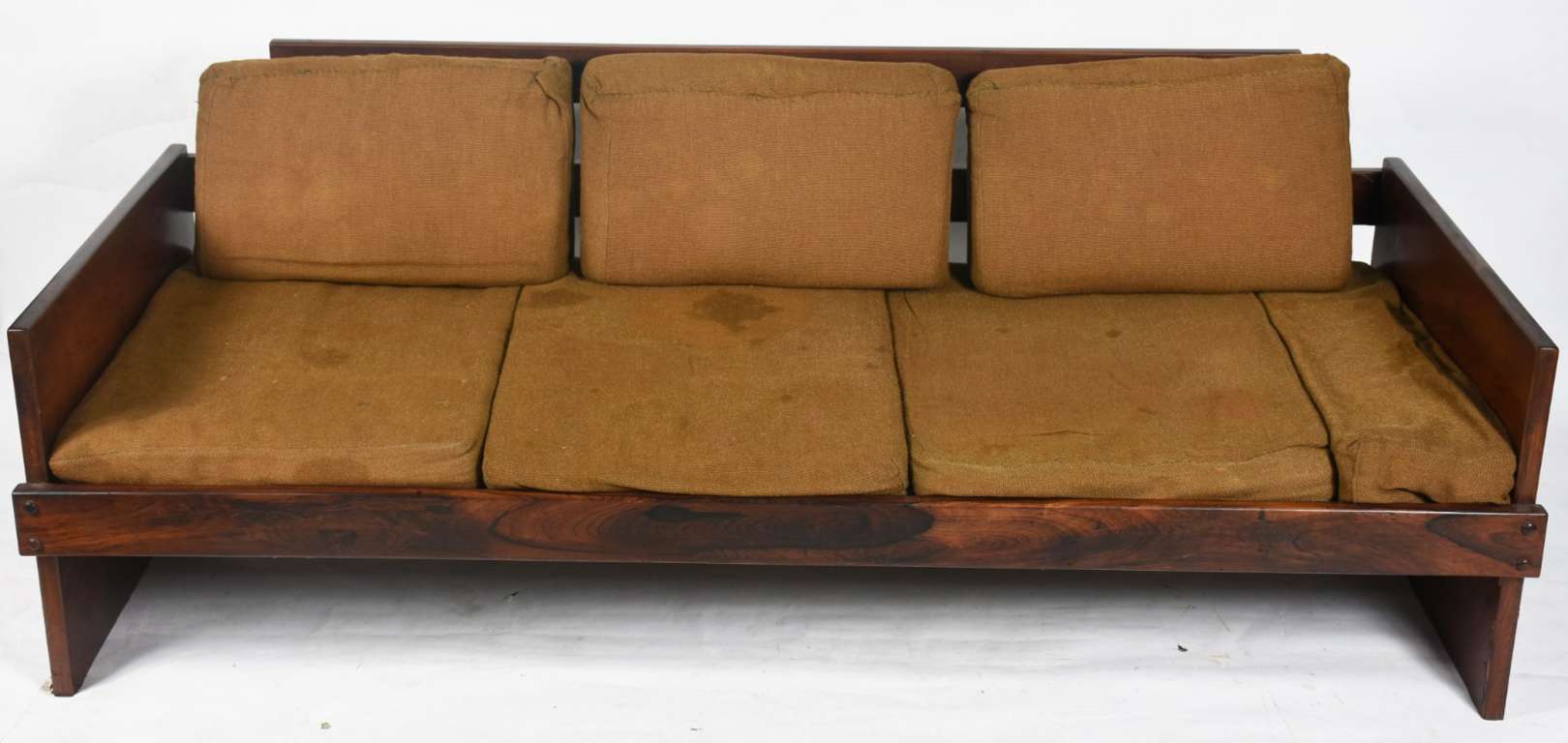 Poltrona em jacarandá com estofamento curvim preto, anos 60 (com desgastes).