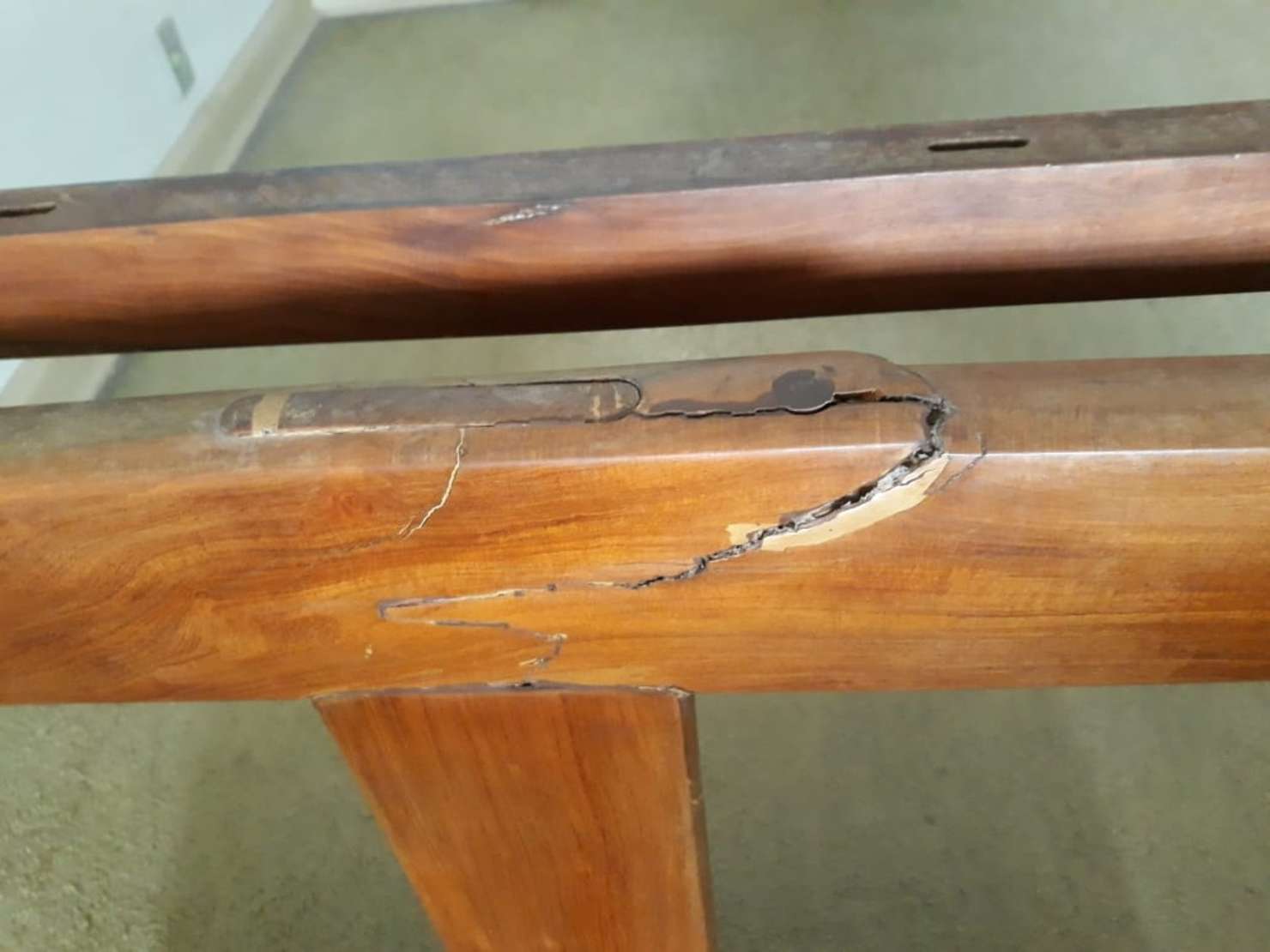 Mesa com 4 cadeiras de jacarandá, tampo de vidro (tampo com bicado).