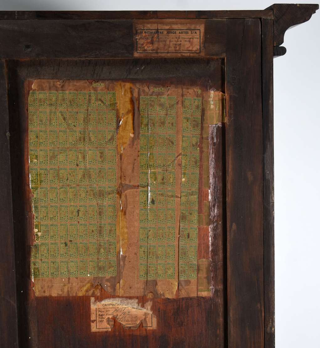 Aparador estilo Chipendale de madeira nobre, saia recortada com florão entalhado, pintado na cor vermelha.