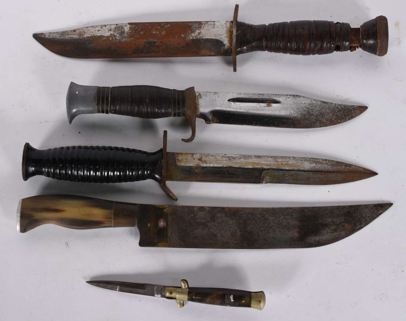 Diversas peças de metal sendo 2 travessas redondas, 3 bandejas com alças (umas delas faltando a alça), caixa e balde ...