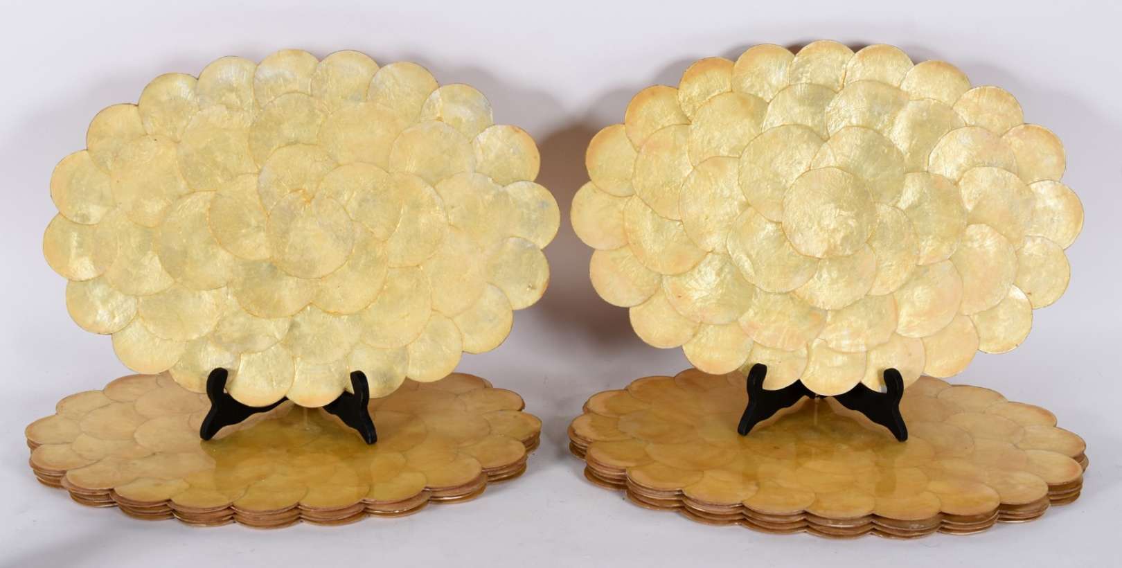 Par de porta confeitos de vidro veneziano com folhagens douradas.