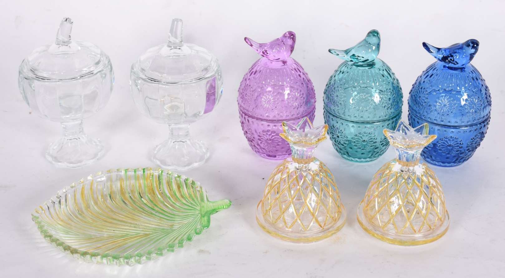 Par de porta confeitos de vidro veneziano com folhagens douradas.
