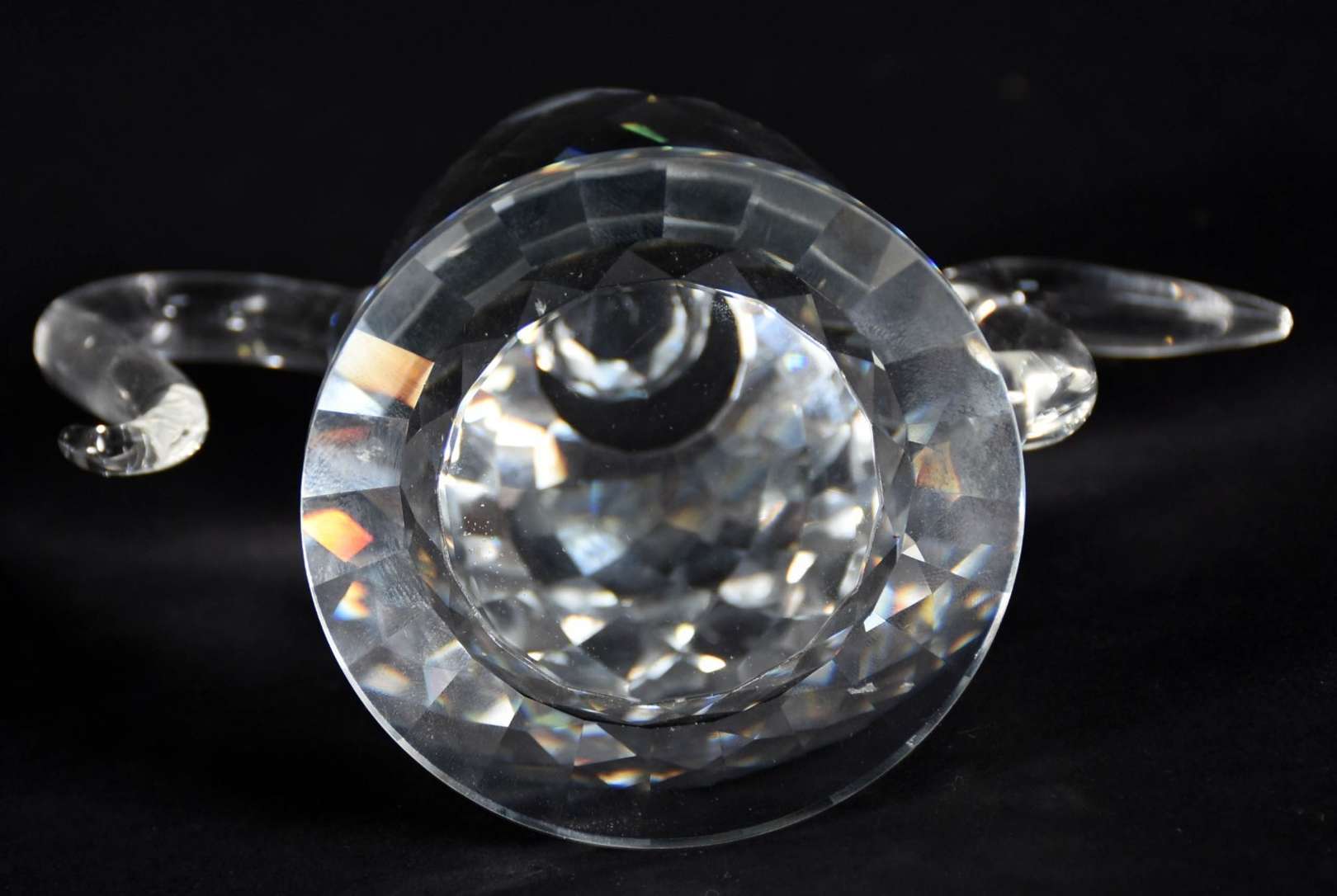 Par de pinhas na forma de esferas de vidro com bases de metal dourado.