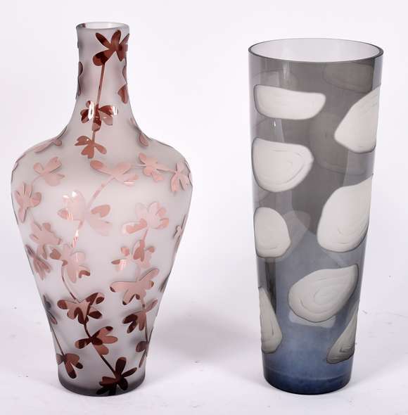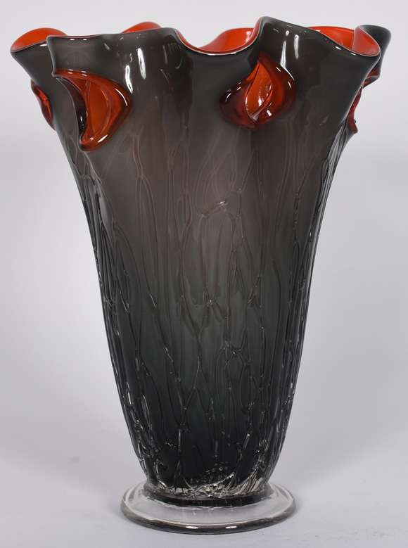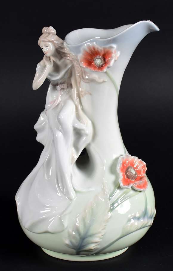 Vaso de cerâmica italiano pintado à mao com flores em policromia, assinado LAMUSA.