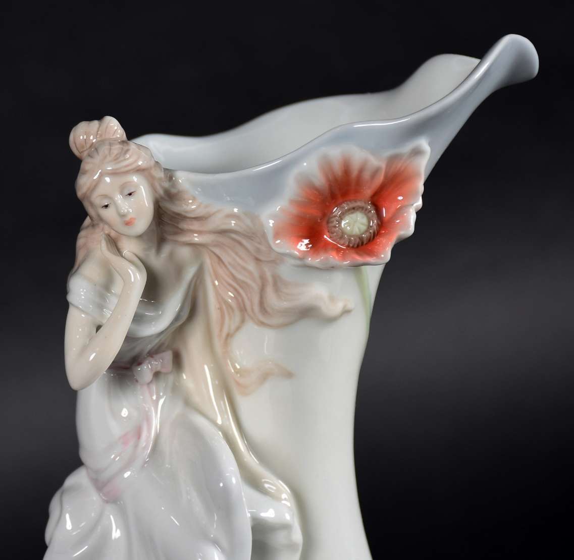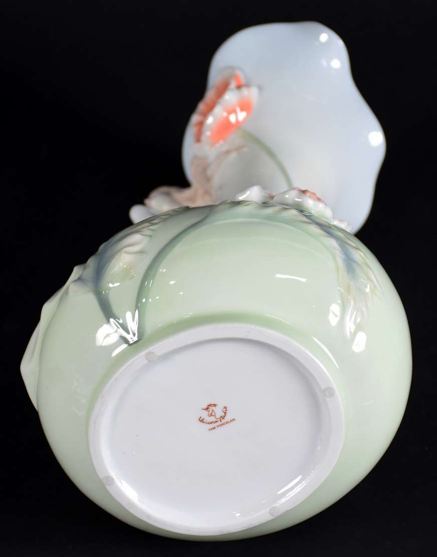 Vaso e leiteira de porcelana oriental policromada.