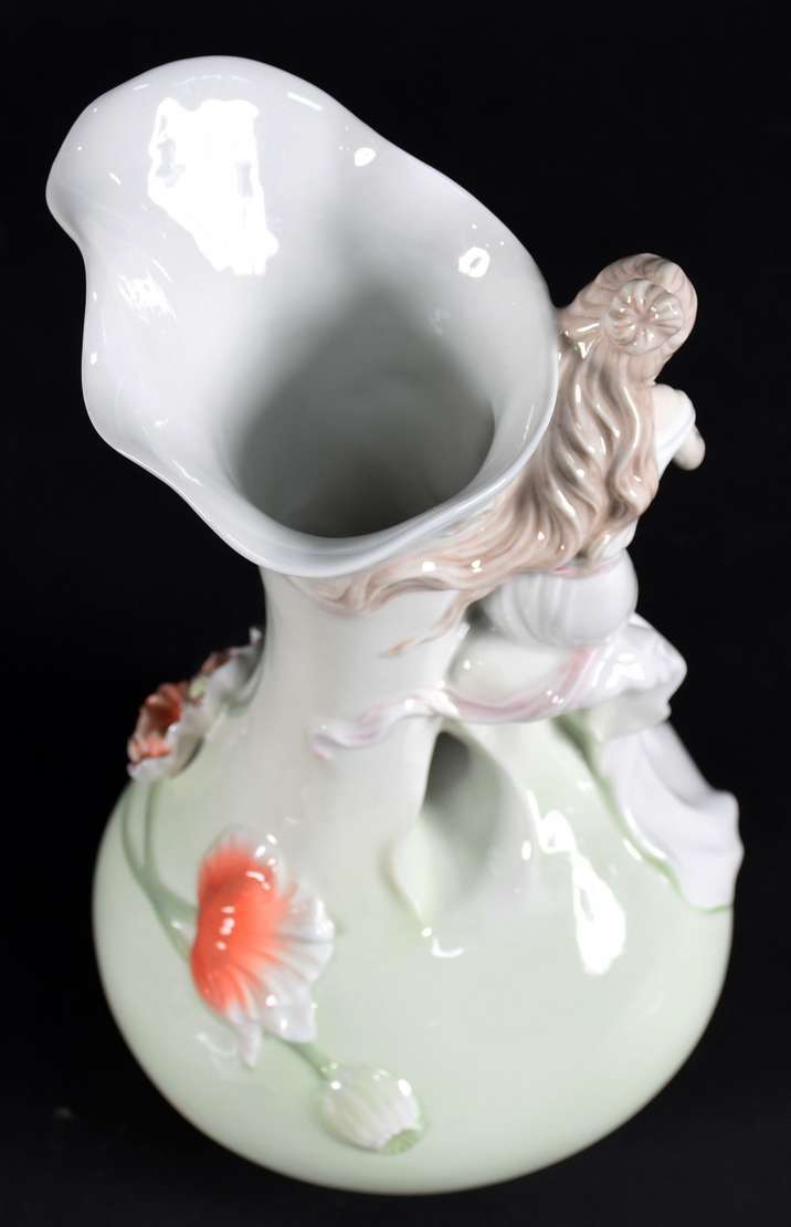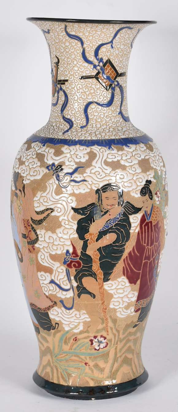 Grande vaso de porcelana Oriental com figuras em policromia.