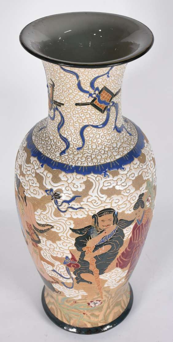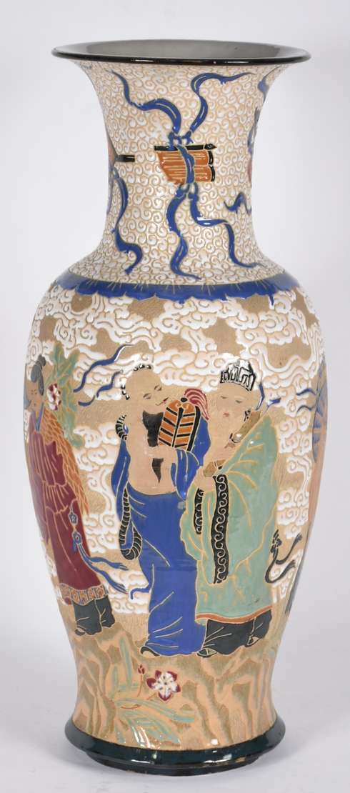 Grande vaso de porcelana Oriental com figuras em policromia.
