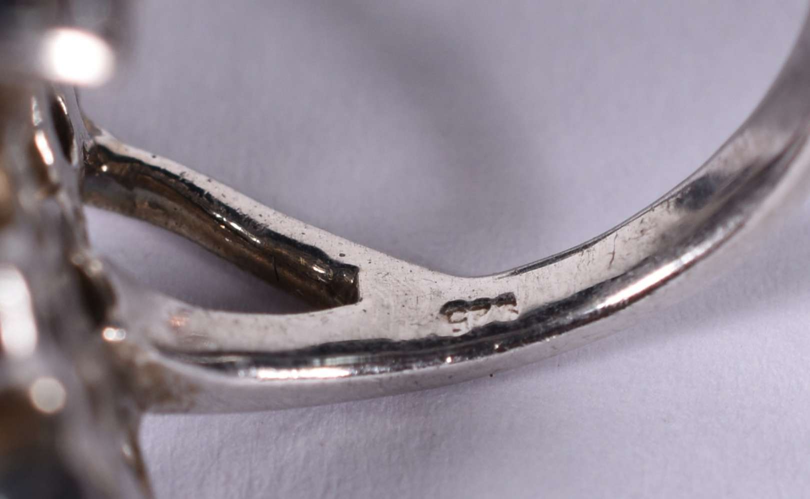 Anel de ouro branco feitio chuveiro com brilhantes, aro 18 (Por motivos de segurança a peça não se encontra na loja).