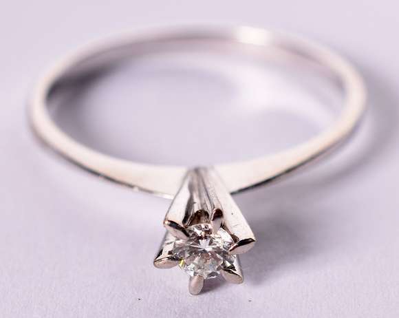 Solitário de ouro branco com 1 brilhante de 0,18 ct, aro 18 (Por motivos de segurança a peça não se encontra na loja).