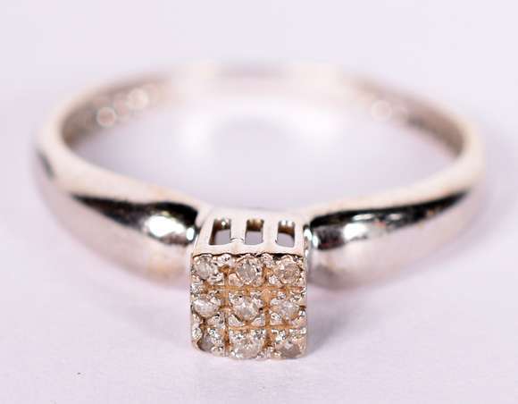 Anel de ouro branco com 12 brilhantes de 0,02 cada, total 0,24 ct, aro 14 (Por motivos de segurança a peça não se en...