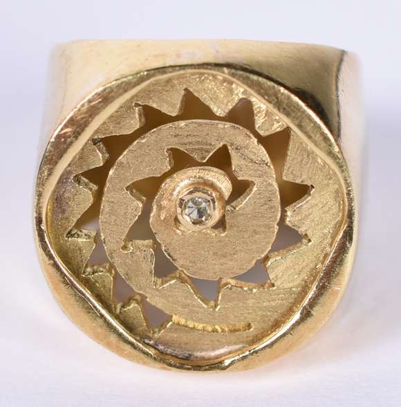 Anel de ouro 18 k feitio maleável, com 30 astes e 3 diamantes, aro 18 (Por motivos de segurança a peça não se encontr...