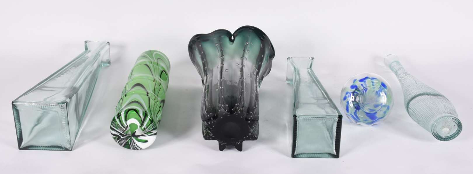 Vaso de vidro decorativo na cor fumé com interior na cor laranja.