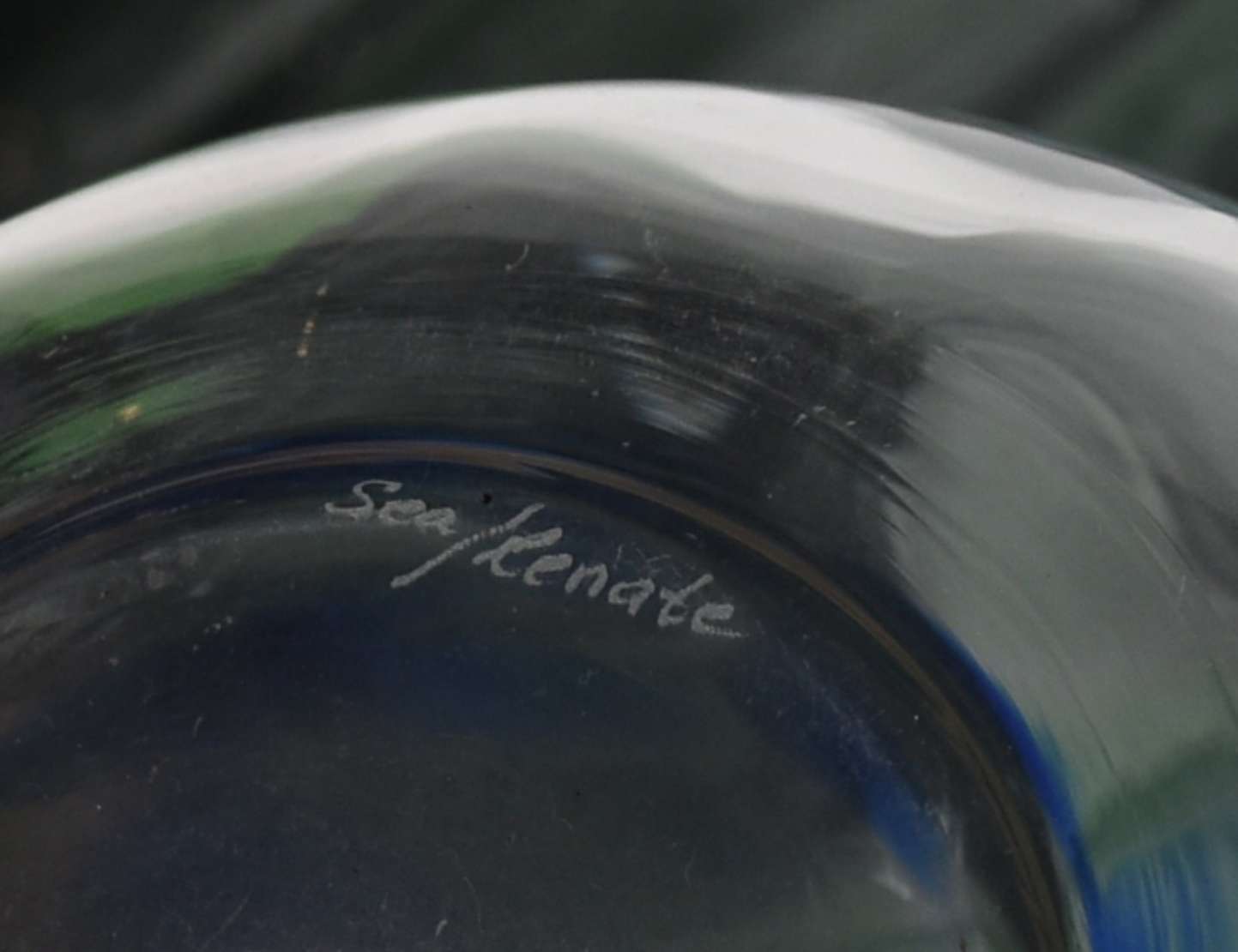 Jarro decorativo de vidro prateado com pó de ouro e reentrâncias.