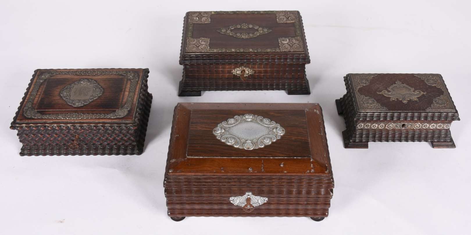 Escrivaninha de viagem de madeira laqueada com incrustações de madrepérola.