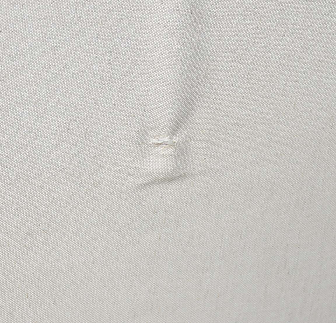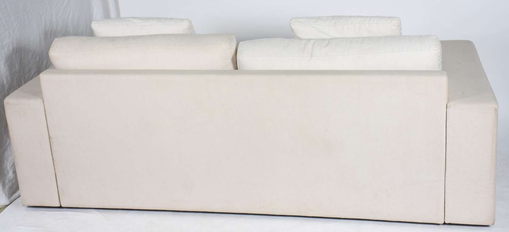 Sofá para 2 lugares estofado e forrado com tecido bege (tecido com desgastes).