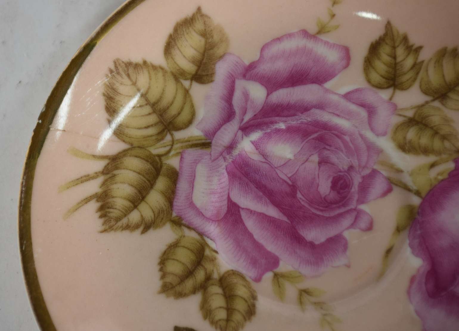 Diversas peças de porcelana sendo 6 xícaras para chá com pires (2 com fios de cabelo), 6 pratos para pão de porcelana...