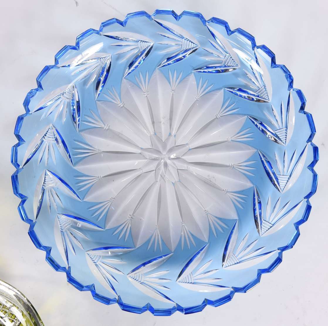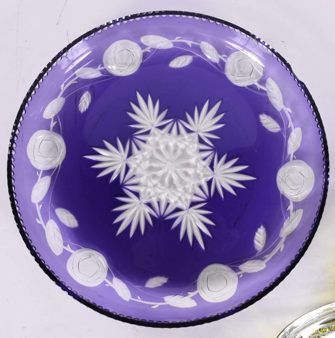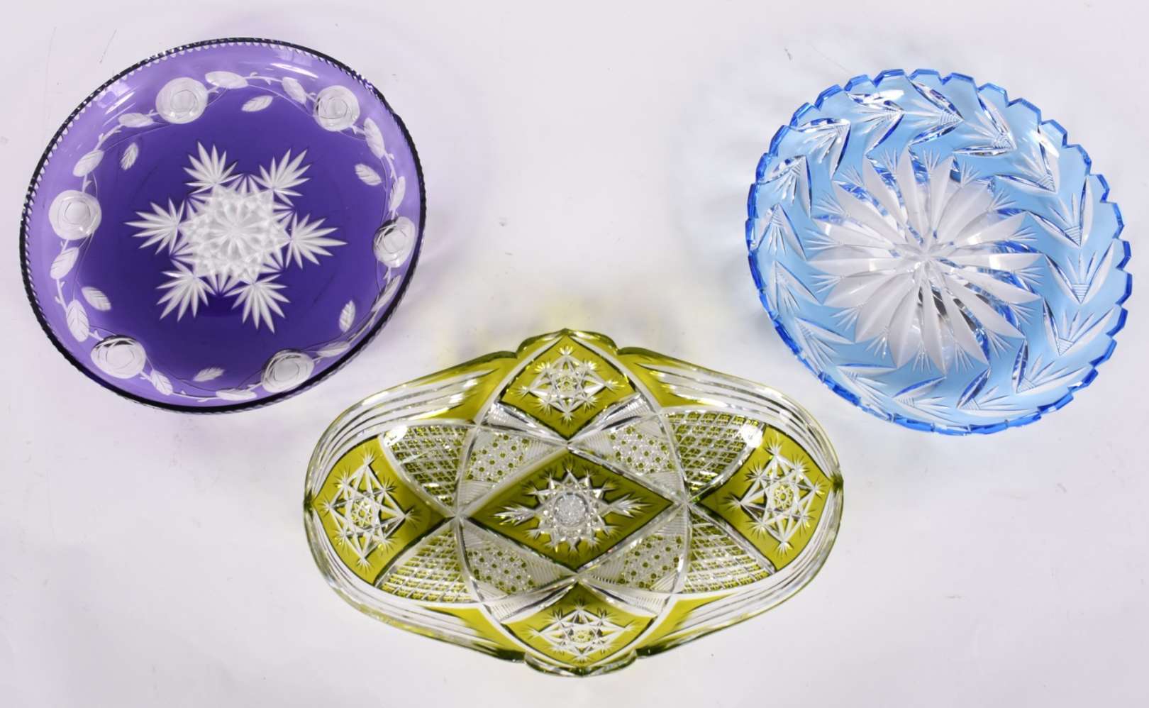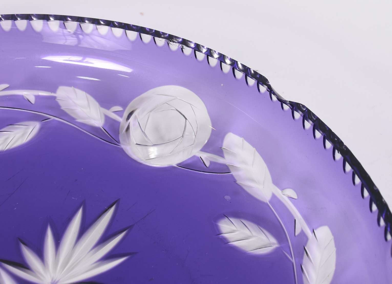 Duas fruteiras de cristal, sendo uma redonda pequena com pé de metal.