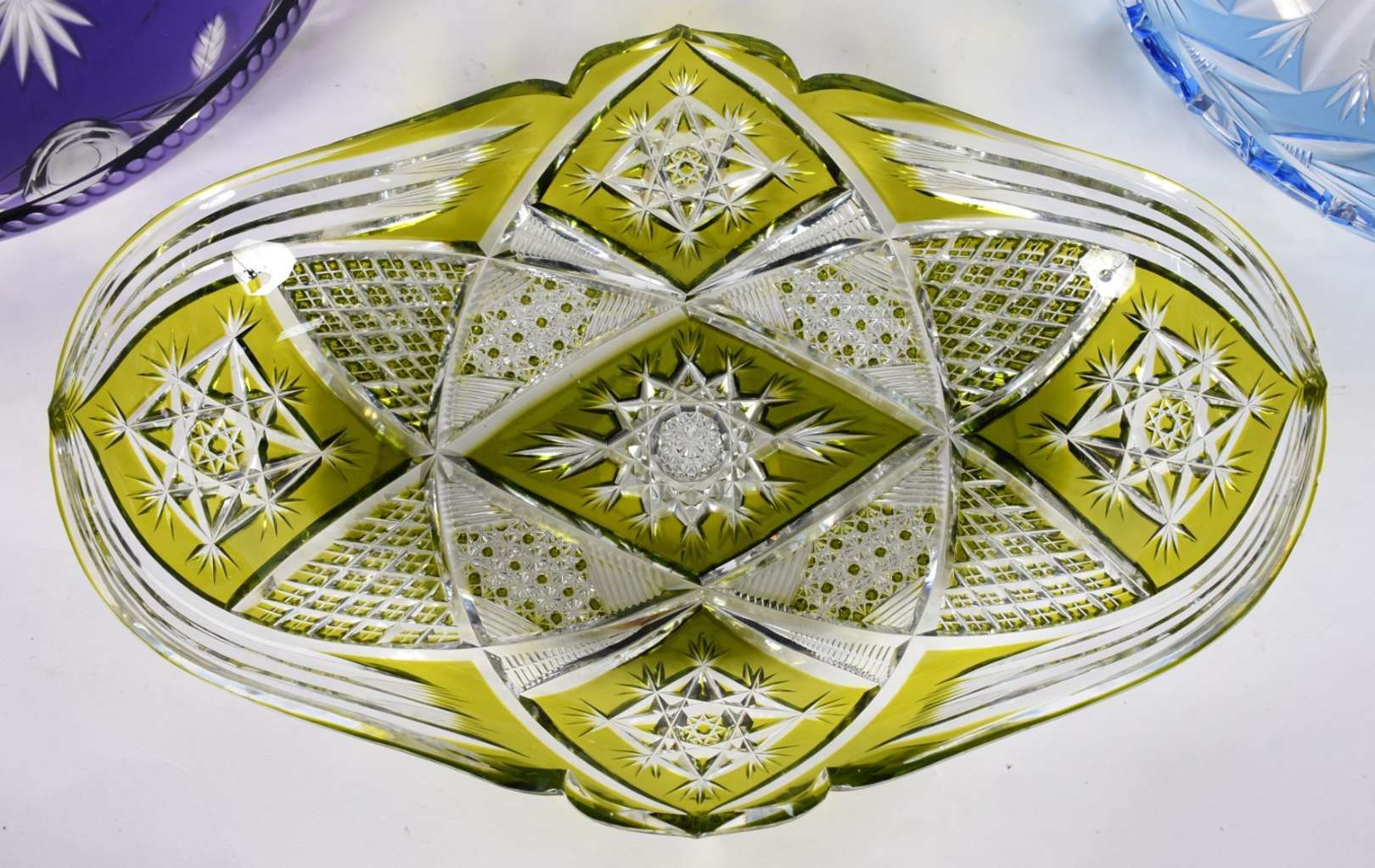 Duas peças de cristal sendo compoteira com presentoir e fruteira.