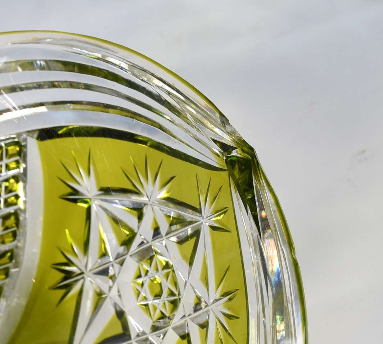 Licoreira de cristal com lapidação dedão ( tampa com quebrado interno e mofo).