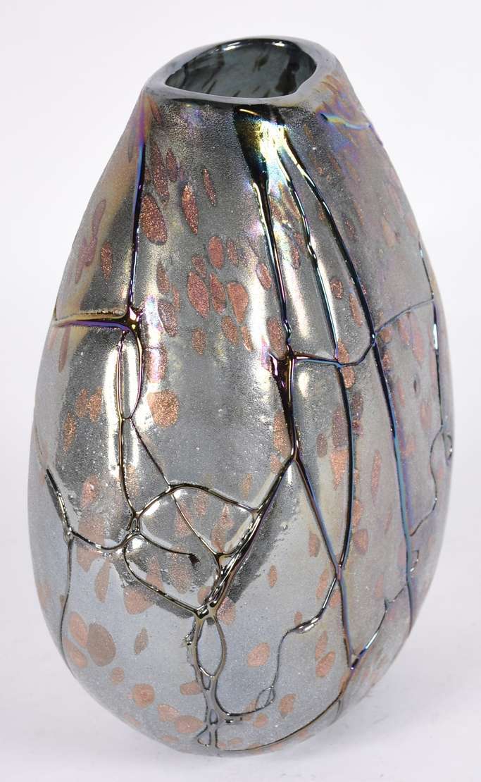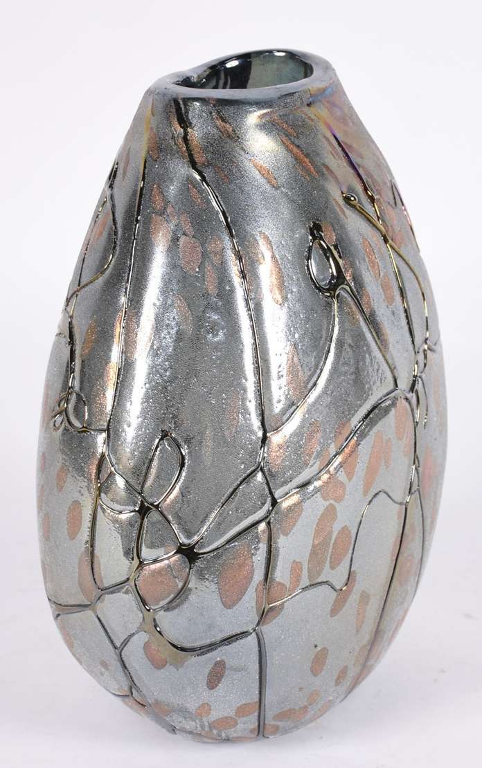 Grande vaso de alumínio martelado.