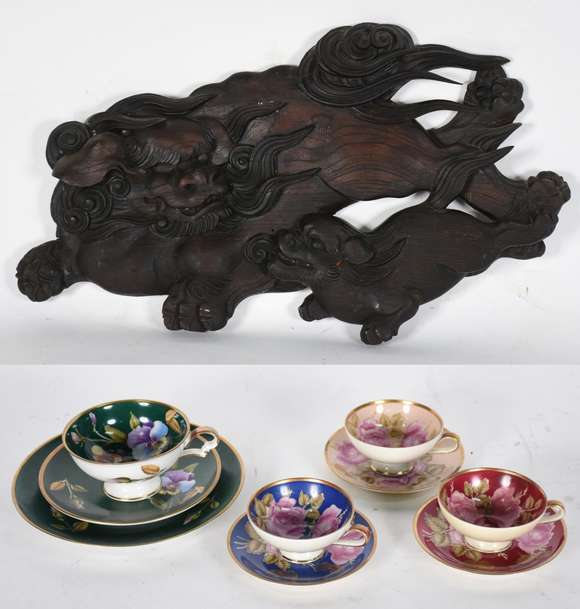 Cinco peças diversas, sendo quatro xícaras com pires de porcelana da Bavaria decorações diferentes e peça oriental d...