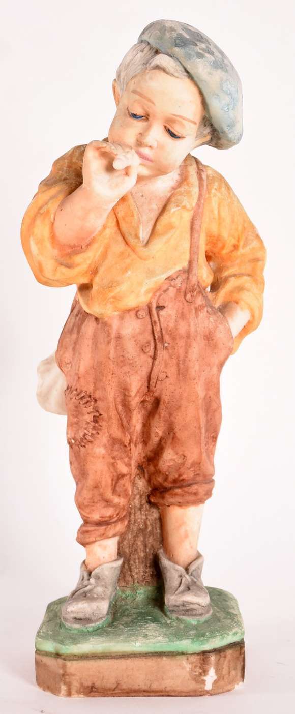 Estatueta de cerâmica policromada representando menino (cabeça colada).