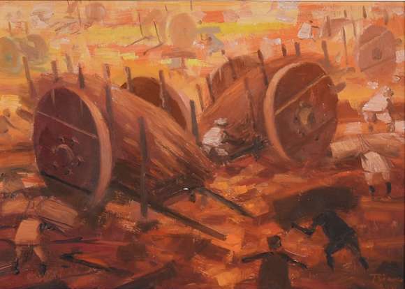 Poster de programa da Revolução Cultural, china década de 60. Xilogravura original.