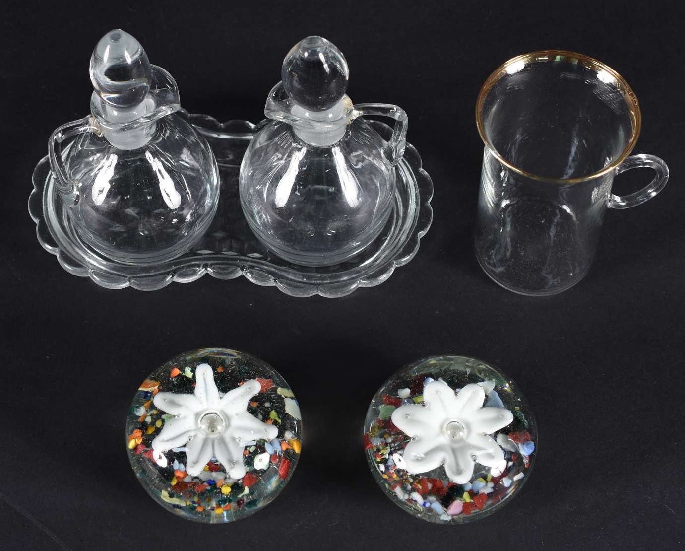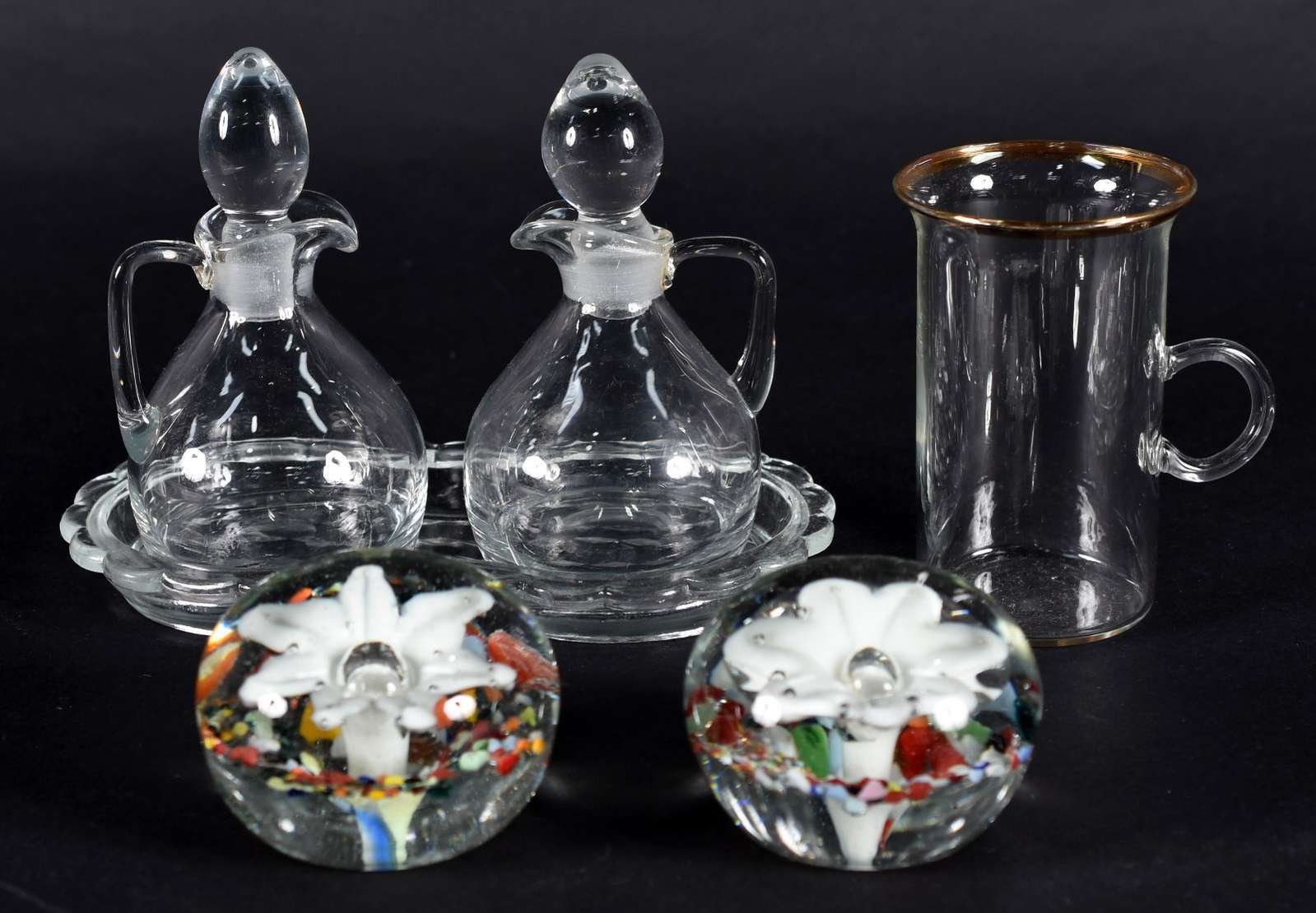 Três peças, sendo vaso de cristal tcheco e dois cálices de cristal double rubi para licor.